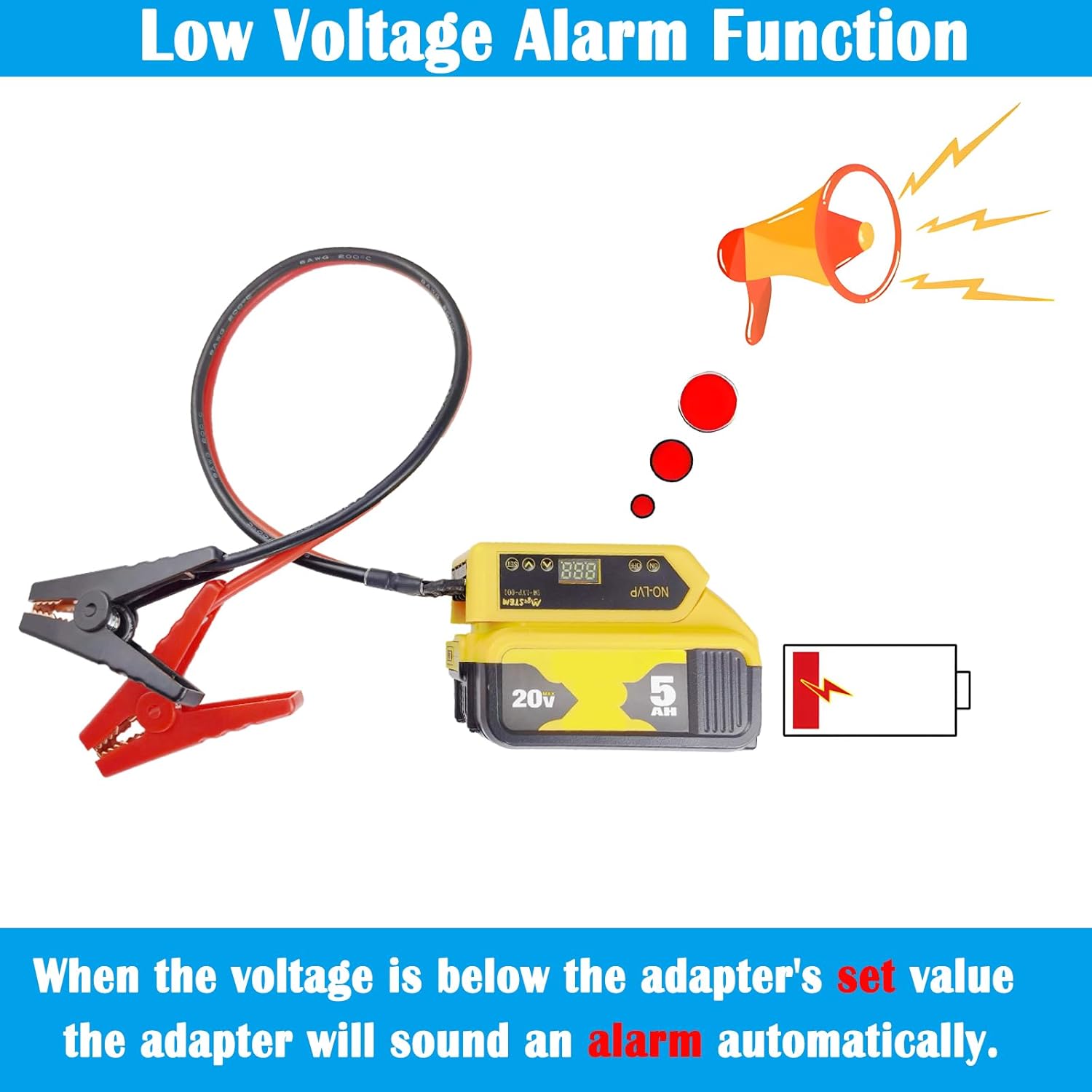 - 【Low Voltage Alarm Function】 When the voltage of the jump starter drops below the adapter's set value, this cable compatible with dewalt 20v jumper cable adapter will automatically issue an alarm to provide timely reminders and facilitate operation