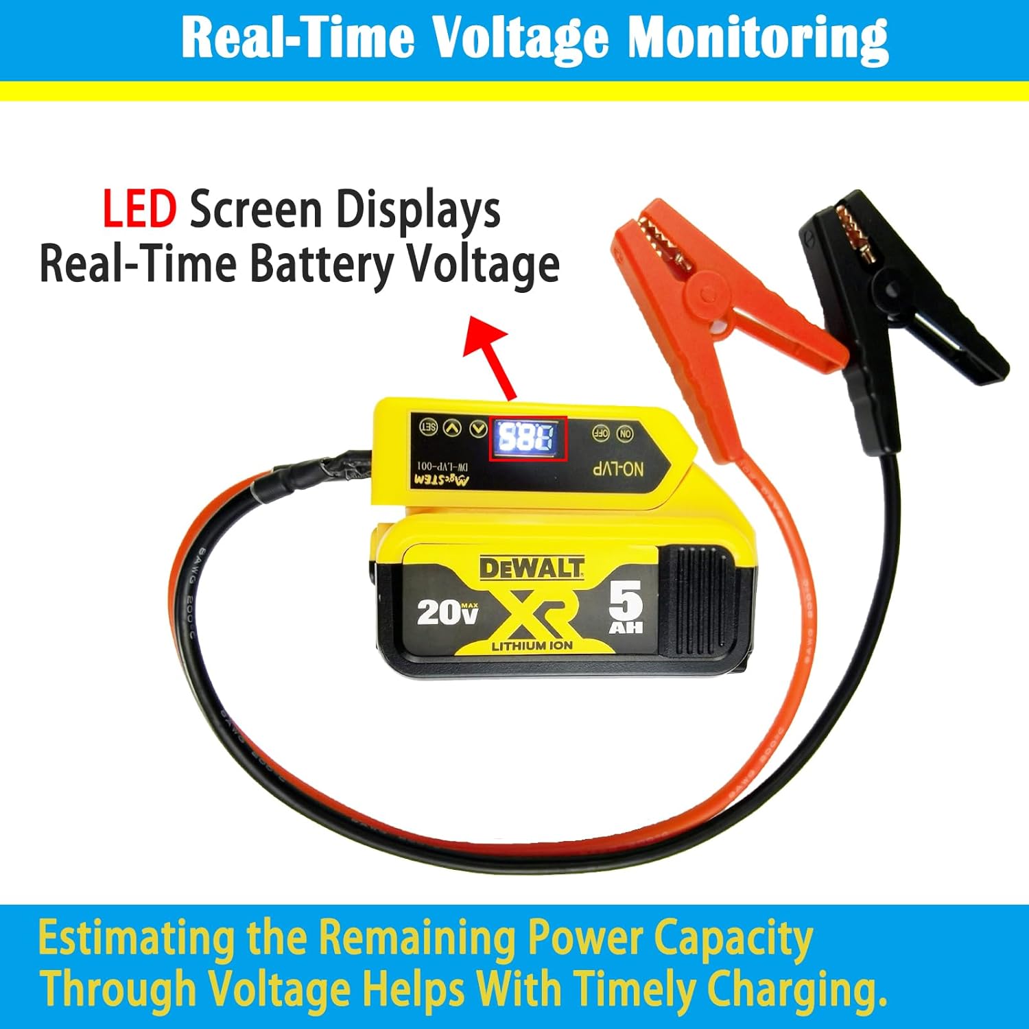 - 【Real-time Voltage Display Monitoring】 Compatible with dewalt jumper cables have LED screen real-time voltage display monitoring function, allowing you to keep track of the battery level of the battery jumper cable at all times