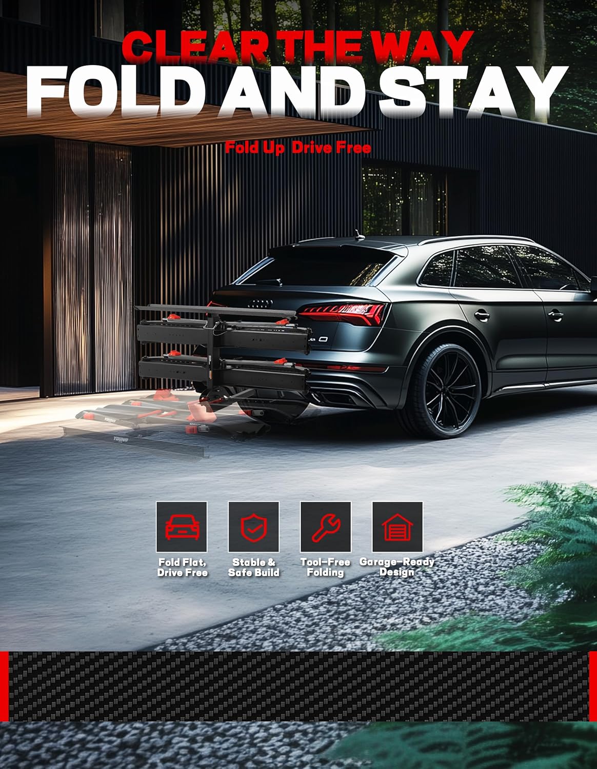 - 【Tri-Lock Stability System】Features three-point reinforced locking mechanism that outperforms standard two-point racks. The overbuilt Off-road first design with advanced anti-wobble technology keeps bikes secure even on bumpy terrain - "Locked by Three. Trusted Anywhere."
