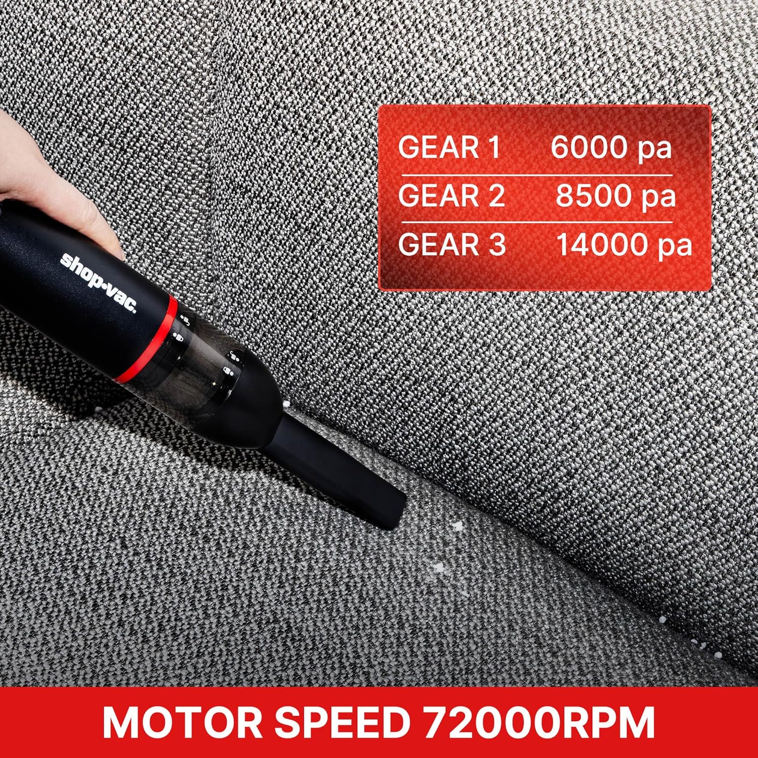 Shop-Vac Car Vacuum Cordless, 14000Pa 2-in-1 Blow/Suction Portable Air Duster, Mini Car Vacuum, Handheld & Lightweight with 6 Nozzles, Type-C Rechargeable for Auto/Home/Office