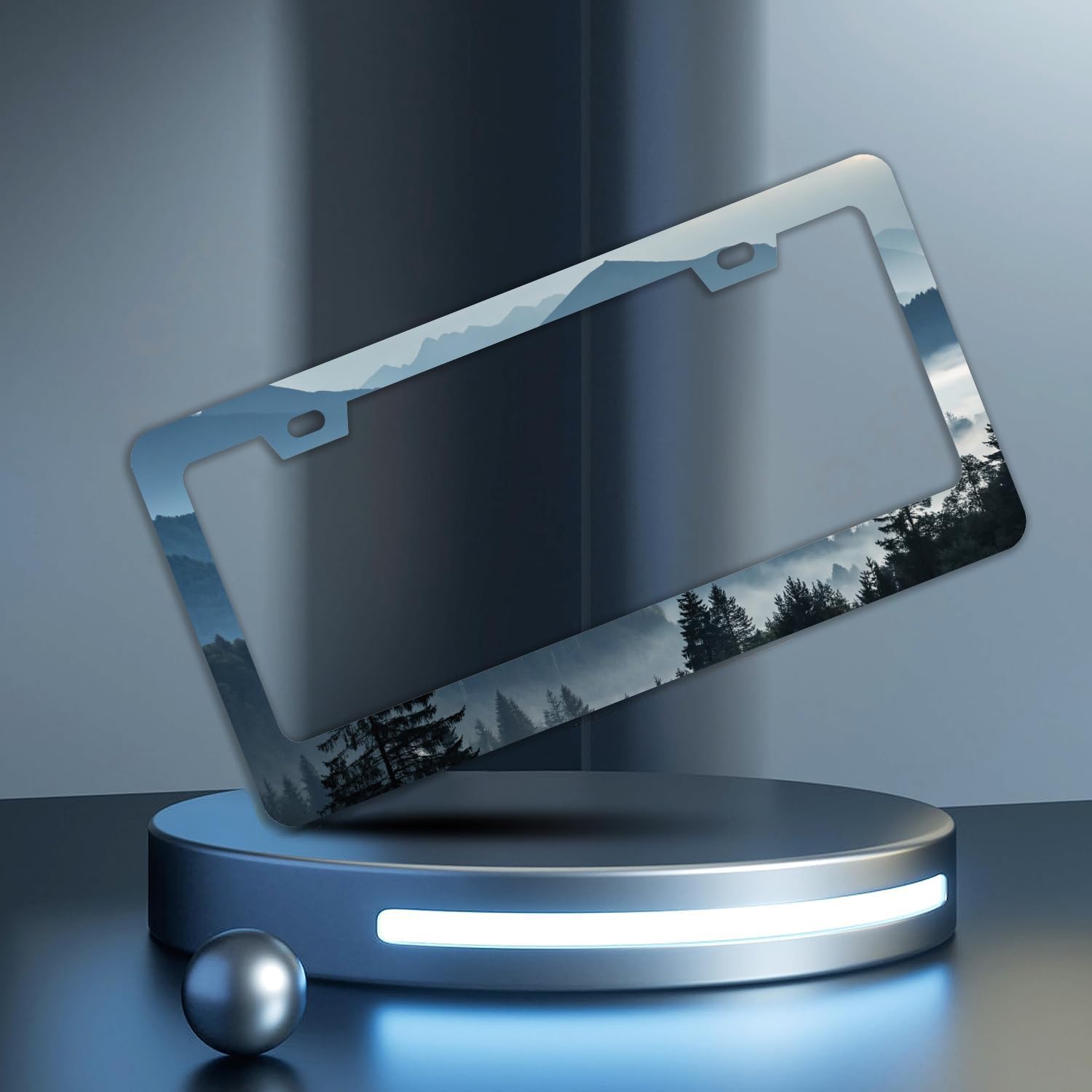 Mountains Forest License Plate Frames - 2 Pcs Set 2 Holes Stainless Steel Metal Novelty Auto Car Accessories Decoration License Plate Frame Cover Size 6.3" x 12.2" Fit US Vehicles for Women Men Gift