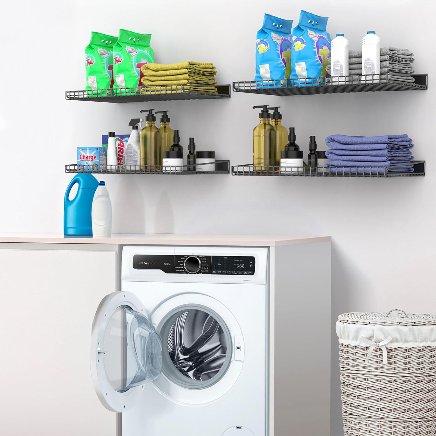 Ultrawall Wall Mounted Storage Shelf for Garage, 4 Pack Metal Shelf Rack, Heavy-Duty Wall Organizer Shelves Suitable for Shop, Shed, Garage 23.5inch x 12inch(Black)