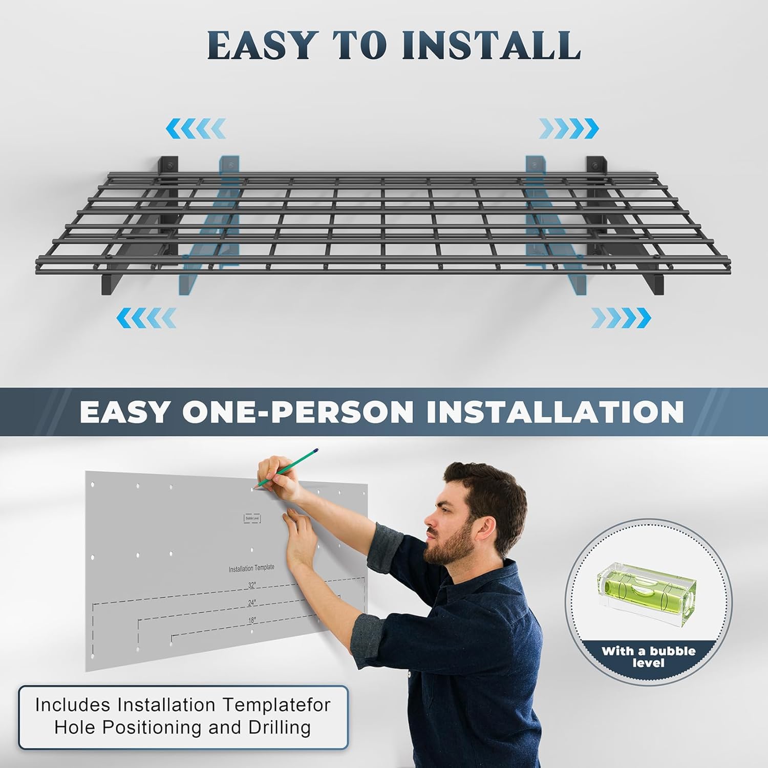 - đŚăAll-in-One Mesh Storageă- The seamless welded mesh design securely holds tires, sports gear, toolboxes, and plastic bins without sagging. Open-grid airflow prevents dust buildup, while the anti-rust coating ensures durability in humid garage environments.