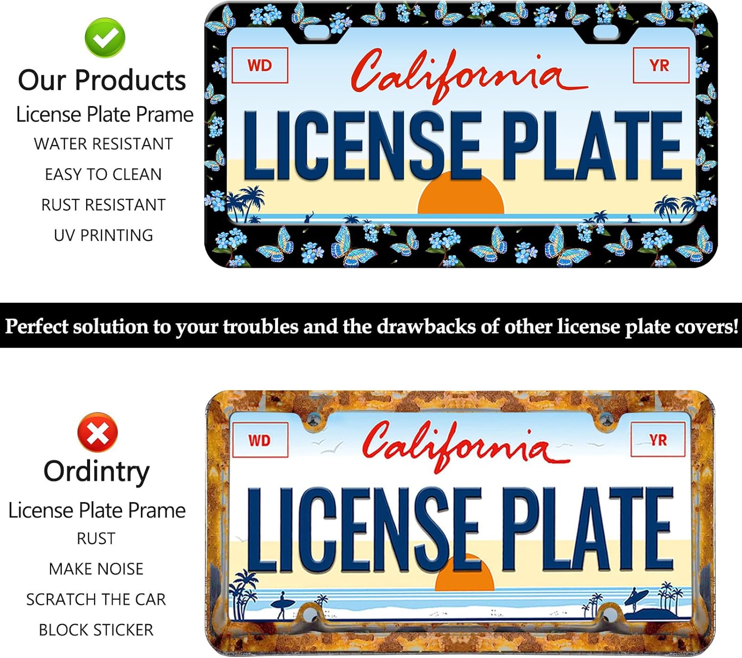 - No Fear Of Wind And Rain: It can be used with confidence in any bad weather conditions, will not be damaged and rusted, protect our vehicle license plates, and perfectly decorate your car
