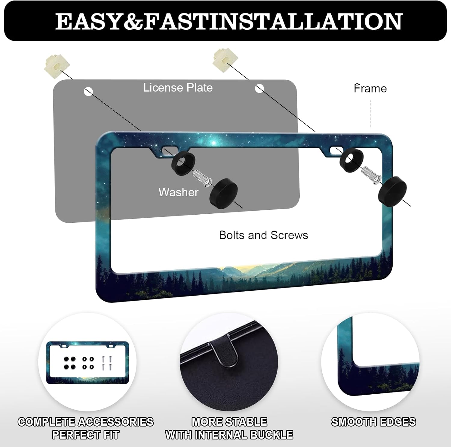 - Easy to Instal: The car license plate frame includes accessories, nuts, anti-theft screws, and comes with installation hardware, including all accessories shown in the figure;The license plate frame is easy to install without any special tools