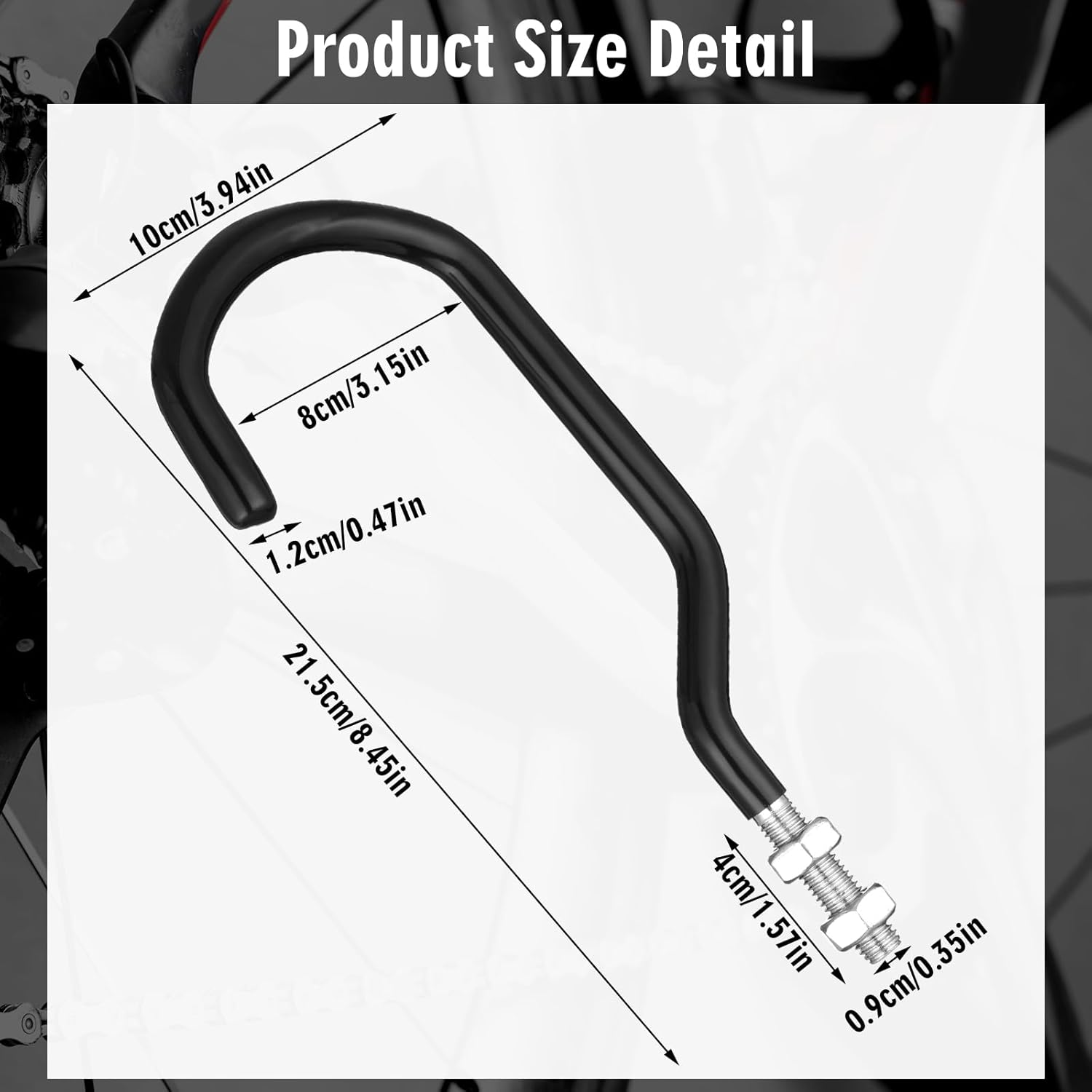 - Built to Last: crafted from robust 9 mm steel rod, these 8 pack bike hooks offer unmatched strength and durability; The inner width of the bend is about 3.17 inches; Designed to support bicycles of various sizes and weights, they're ideal for both home garages and commercial storage