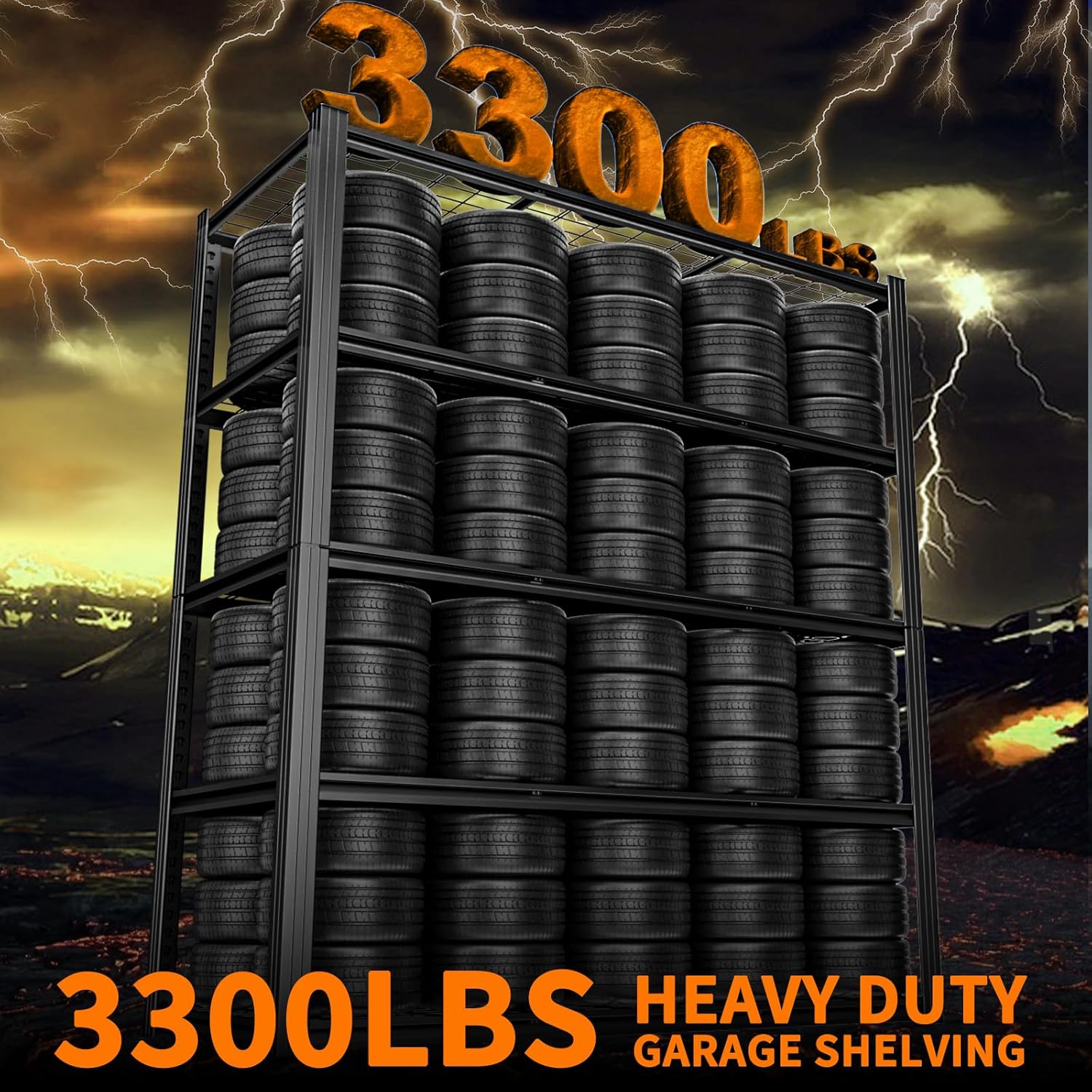 - 【3300 LBS Heavy Duty Shelving】This heavy duty garage shelving unit has thickened double metal legs. Made of high-quality metal, each solid thickened metal shelving with 2 upgrade support strips beneath can hold up to 660 lbs, with a total bearing capacity of 3300 lbs, which makes industrial garage shelves heavy duty more stable and solid than normal metal shelves for storage and more stuff can be stored.