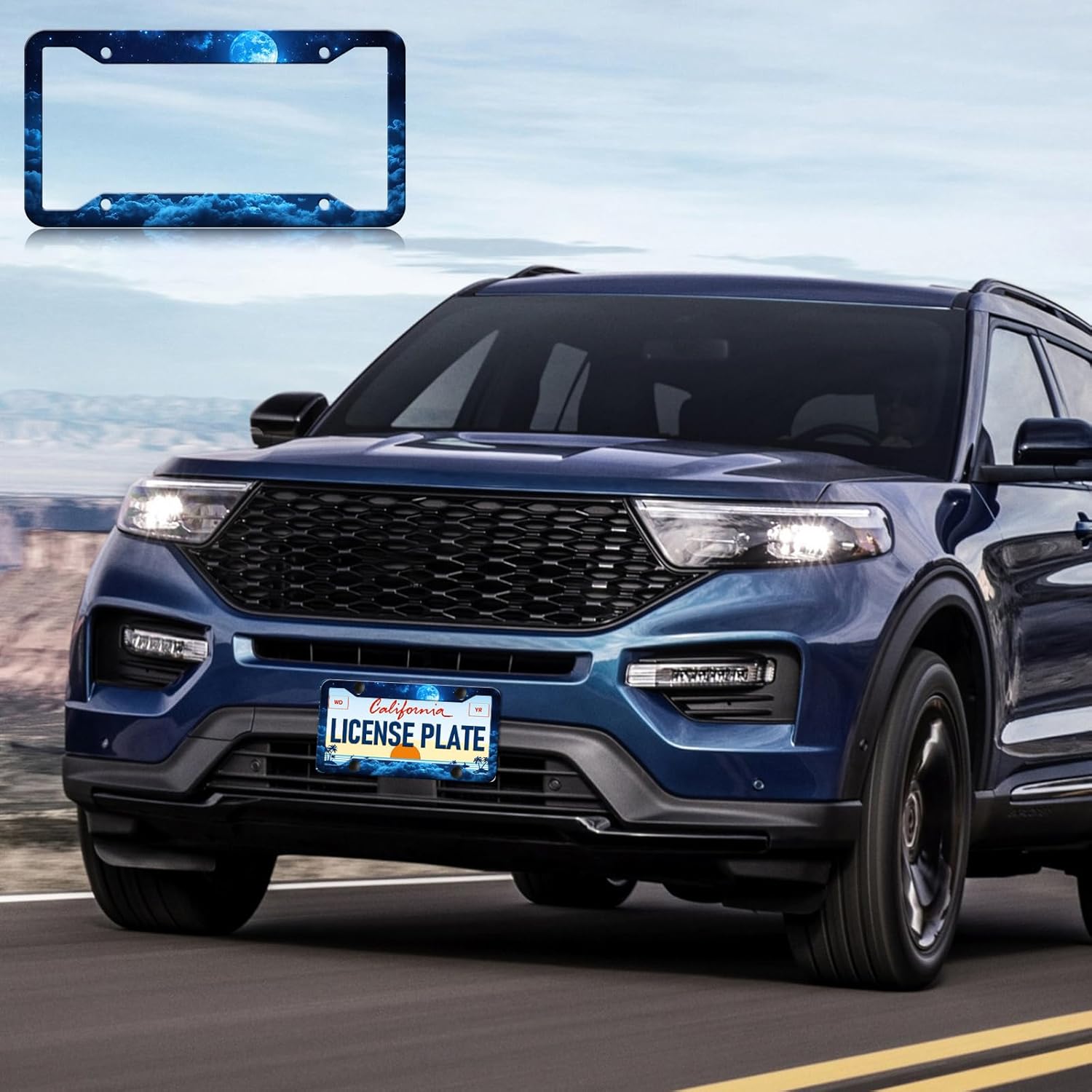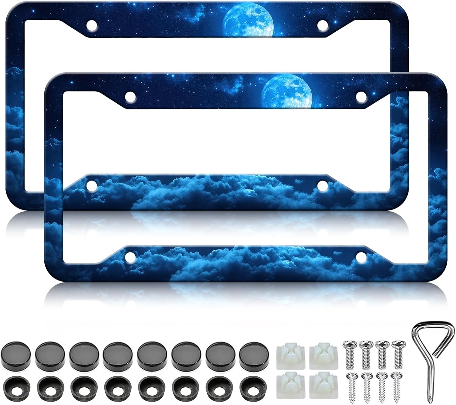 Moon Galaxy Starry Sky License Plate Frames - 2 Pack Night Sky License Plate Holder,Stainless Steel Rust-Proof Waterproof Car Decorative Tag Frame with Screws Fasteners Caps
