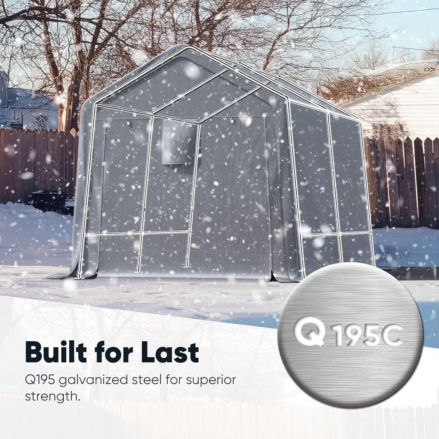 Quictent Heavy Duty 8x12FT Carport Shelter with Roll-Up Mesh Windows & Reinforced Frame, Portable Garage Canopy for Motorcycle Storage, Outdoor Equipment, Patio Furniture Cover - Silver Gray