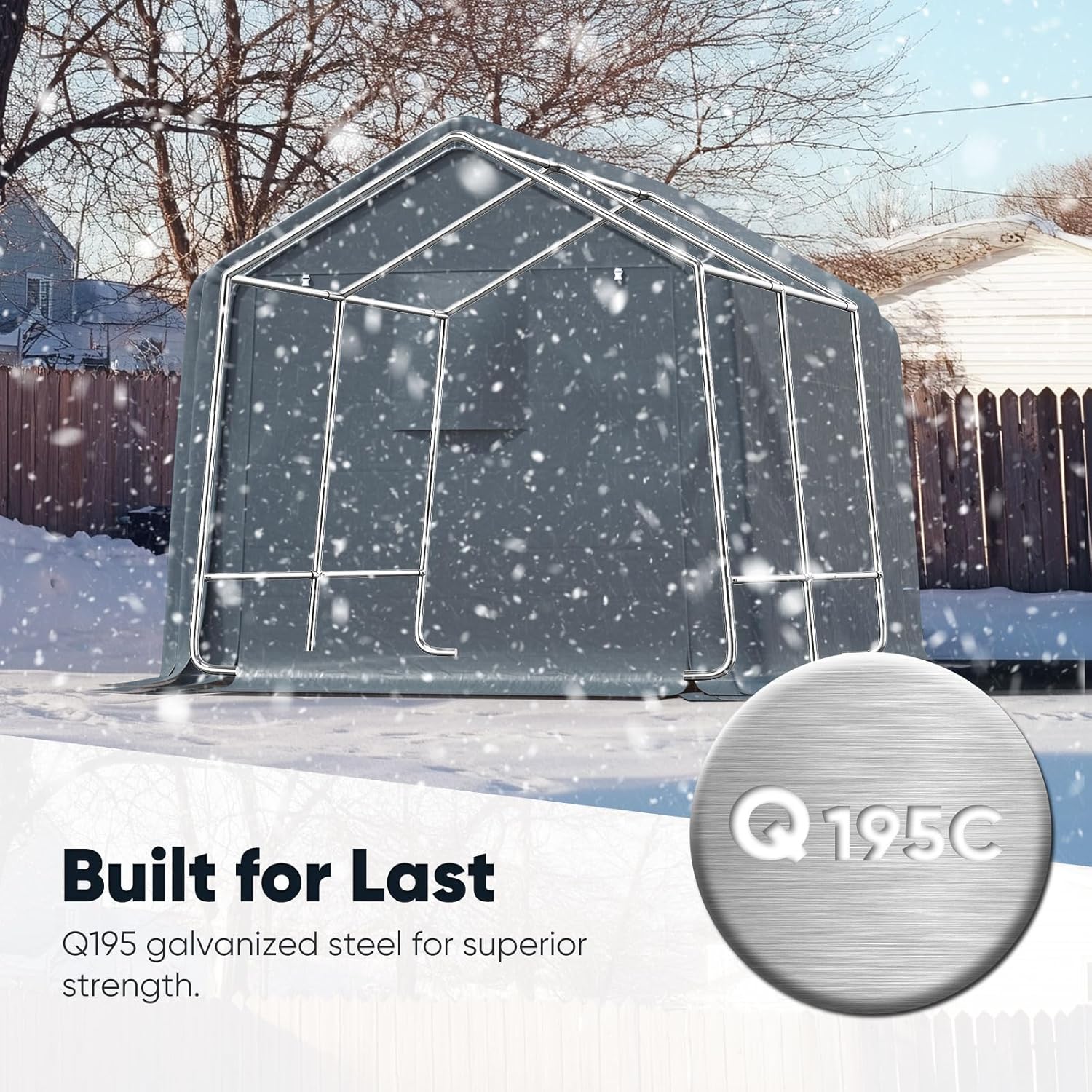 Quictent Heavy Duty 8x10FT Carport Shelter with Roll-Up Mesh Windows & Reinforced Frame, Portable Garage Canopy for Motorcycle Storage, Outdoor Equipment, Patio Furniture Cover - Dark Gray