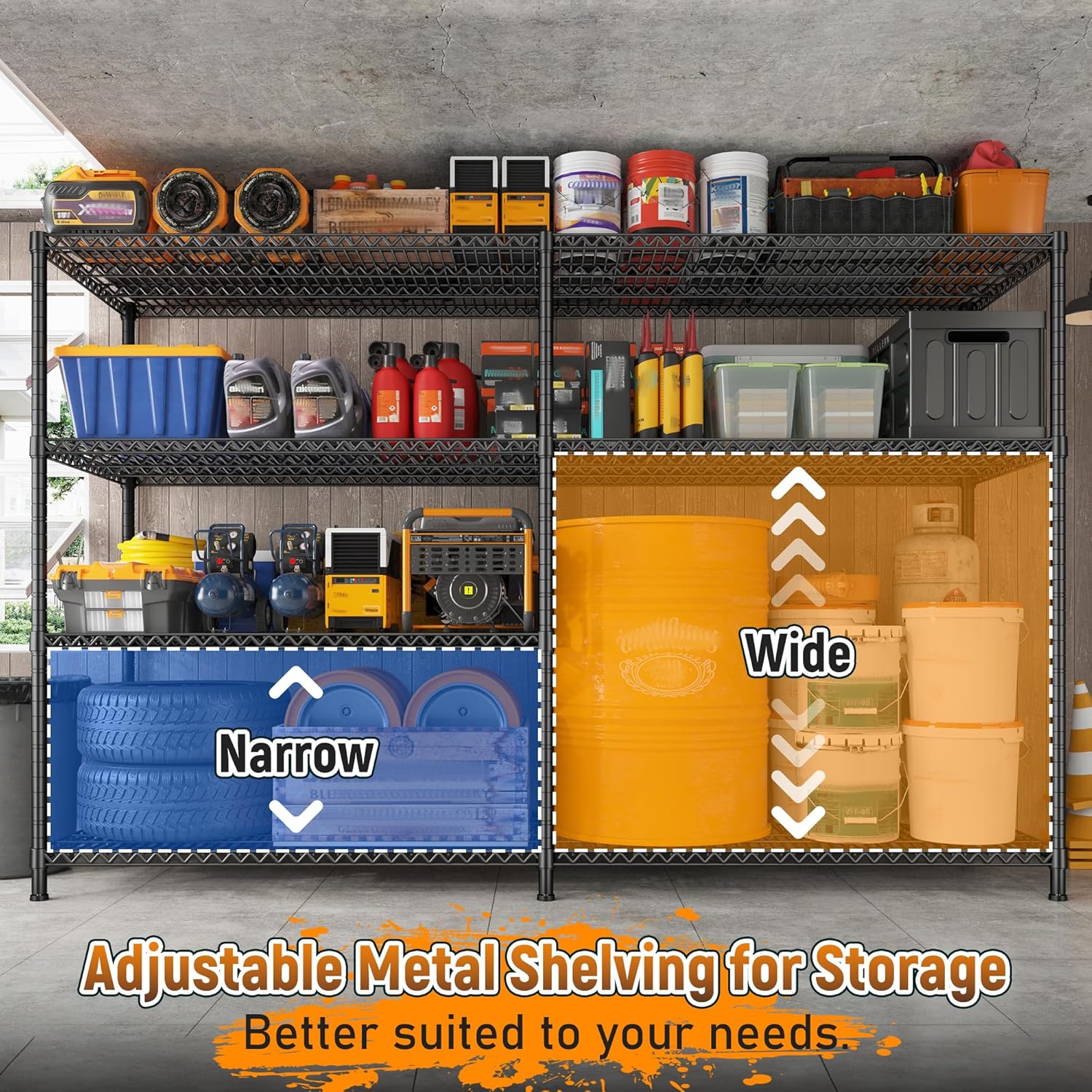 REIBII 81.5''W Storage Shelves 3680LBS Garage Shelving Heavy Duty 4 Tier Metal Shelving Unit Adjustable Wire Shelf and Storage Pantry Shelves for Kitchen Garage, 81.5Wx23.62Dx70.86H,Black, 2PCS