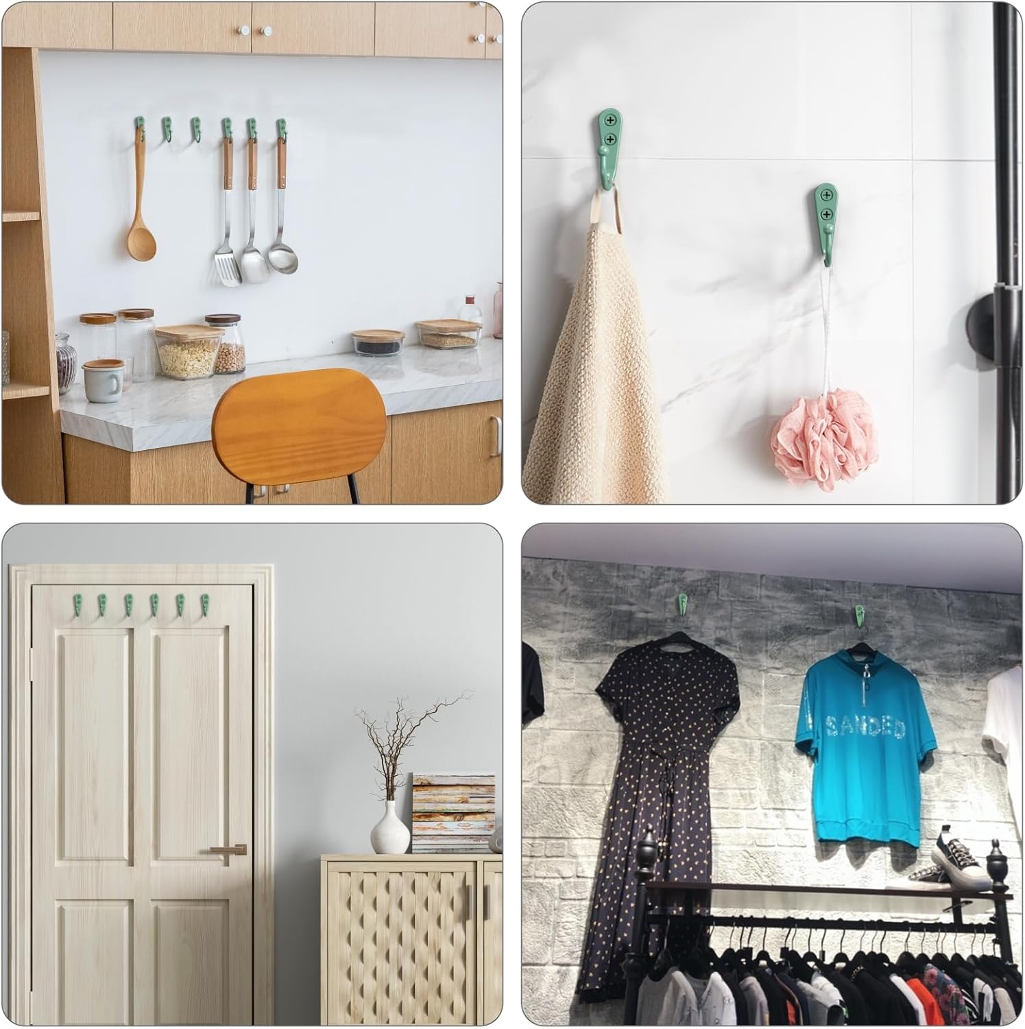 15 Pcs Black Wall Mounted Coat Hooks, Hanger Hook with 30 Pieces Screws for Towel, Key, Robe, Scarf, Bag, Cap, Coffee Cup, Mugs(Green)