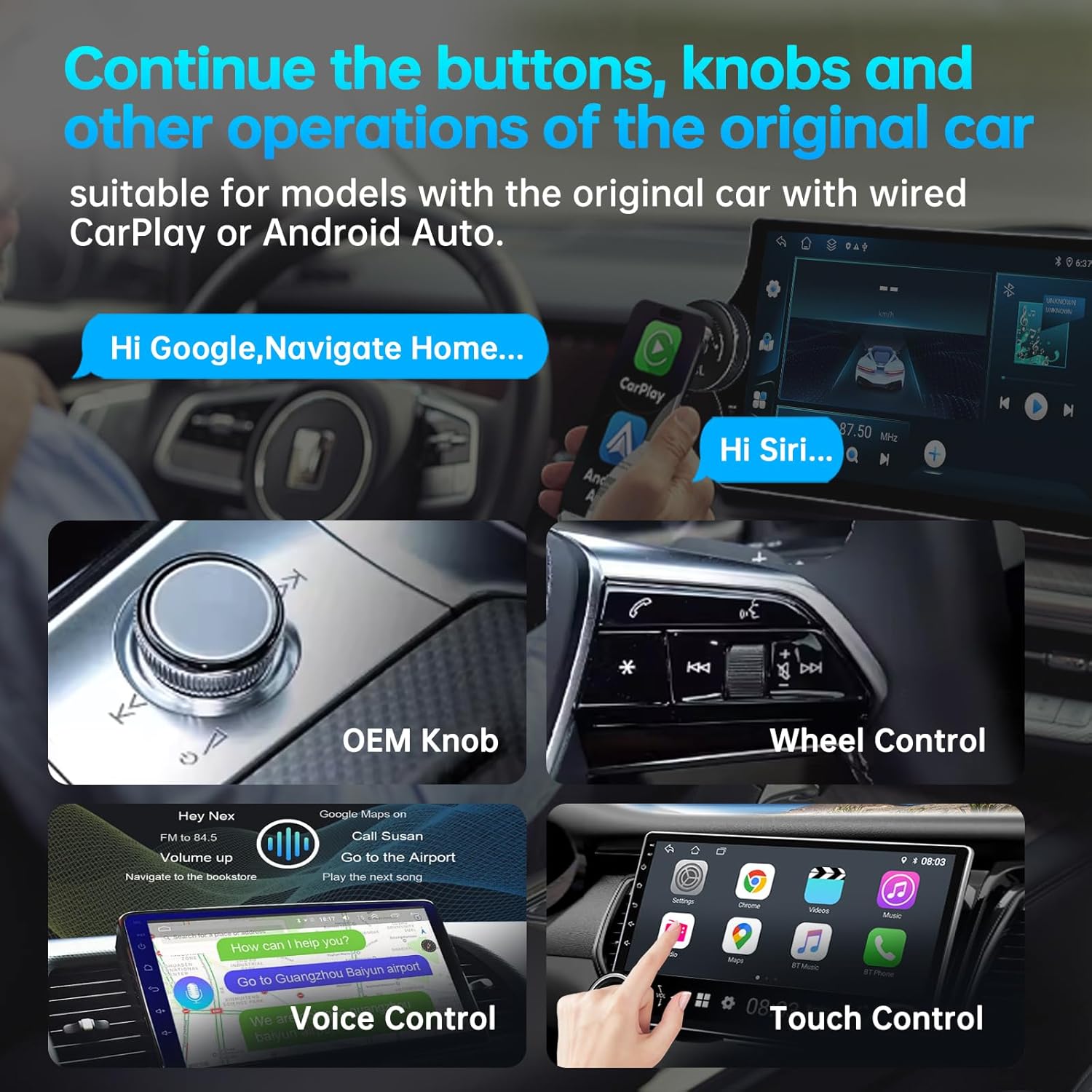 - 【Support OTA upgrade】online feedback, solve problems quickly.Compatible with iPhone 6 and later running iOS 10 or later. Supports more than 800 models equipped with wired Apple CarPlay.