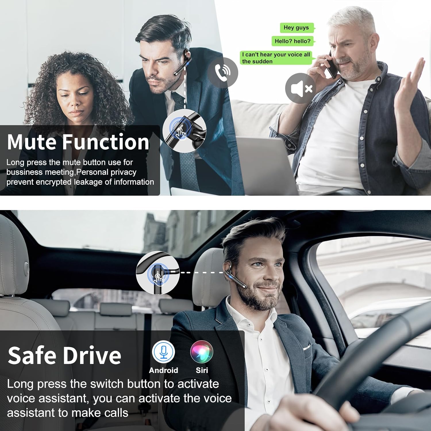- Mute Button for Easy Control: This bluetooth earpiece features intuitive button controls, including a dedicated mute button. Simply press once to hear the "mute on" prompt, and press again to confirm "mute off". Whether it's outdoor activities, office use, hiking, or truck driving, this running headphones can provide you with reliable performance wherever you are.