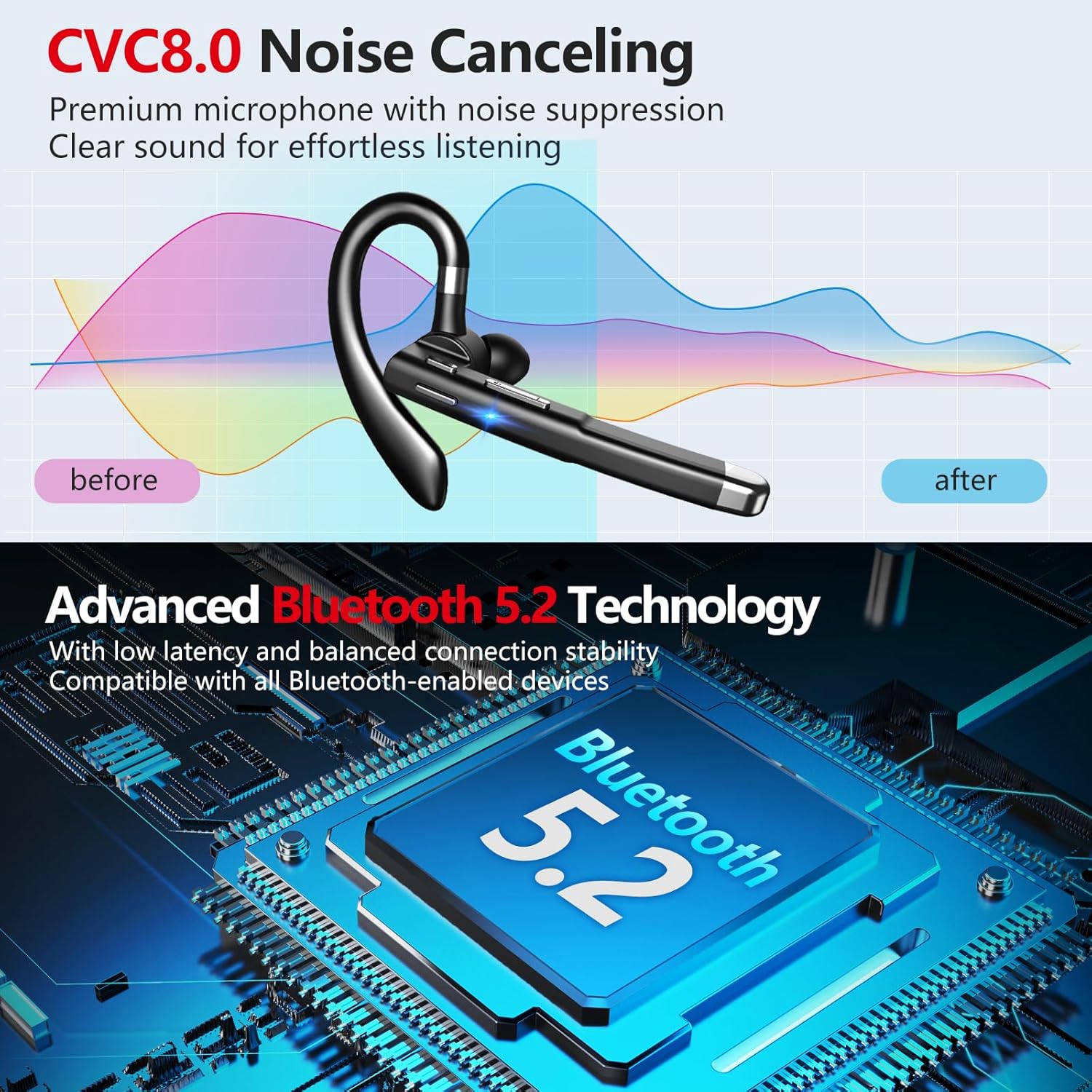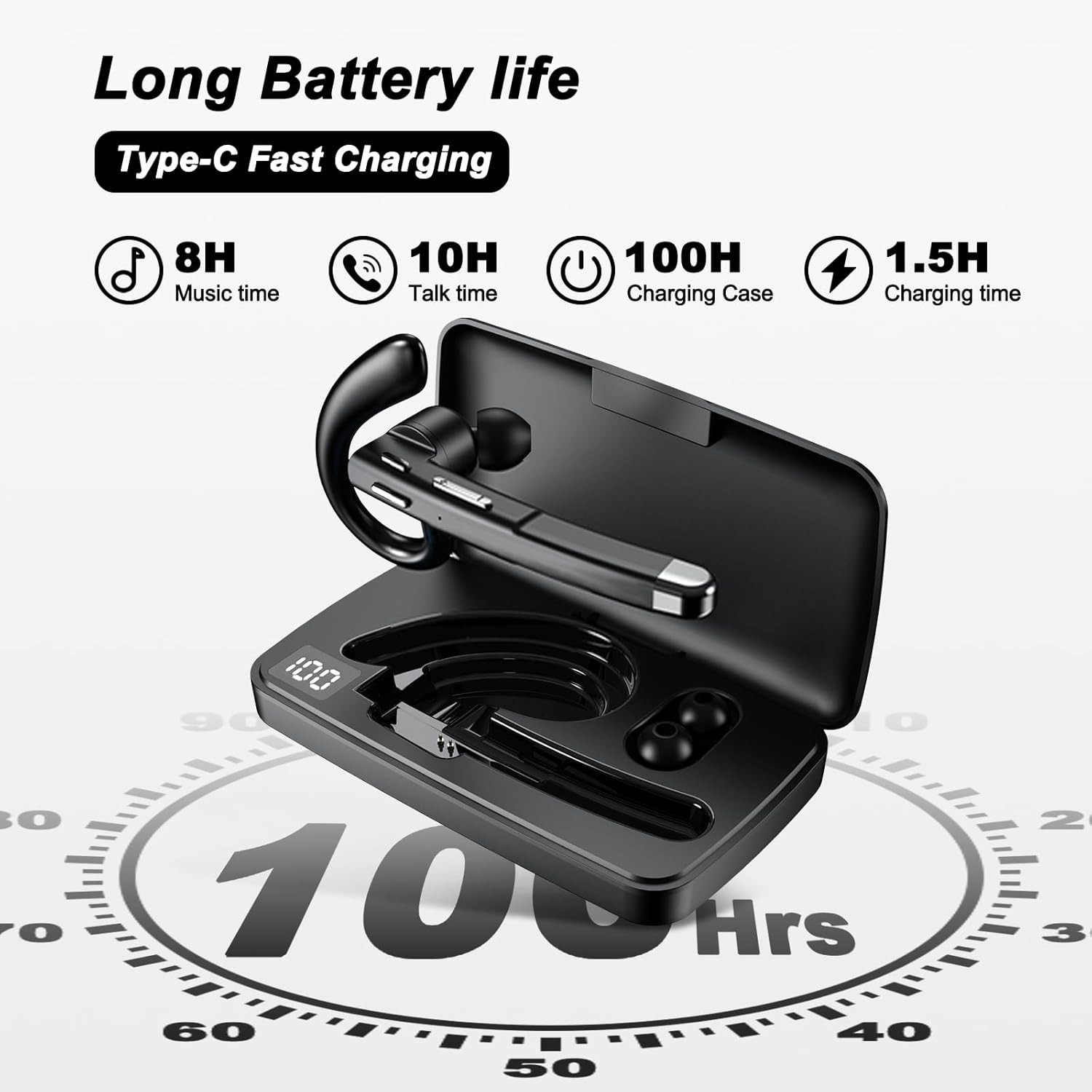 - 100-Hour Long Battery Life with LED Display: The single-ear Bluetooth headset offers 7-8 hours of standalone use, while the 500mAh charging case provides nearly 100 hours of total music/call time.The wireless microphone headset charging case features an LED digital display that clearly shows the remaining battery level, giving you a quick and intuitive way to check when it's time to recharge.
