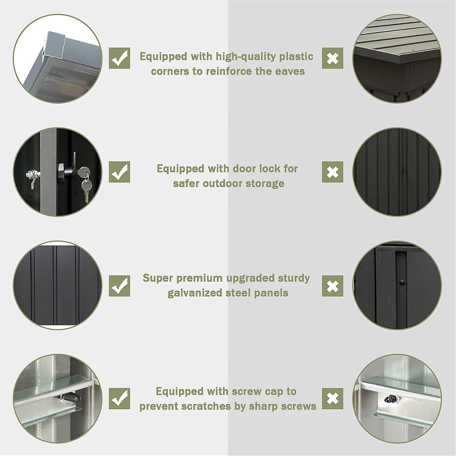 - Durable Galvanized Steel Frame for Long-Lasting Use Constructed with premium galvanized steel. The powder-coated surface enhances durability while maintaining a sleek aesthetic. Ideal for high-humidity or rainy regions, it withstands decade-long use without warping—perfect for storing tools, gardening equipment, or seasonal items.