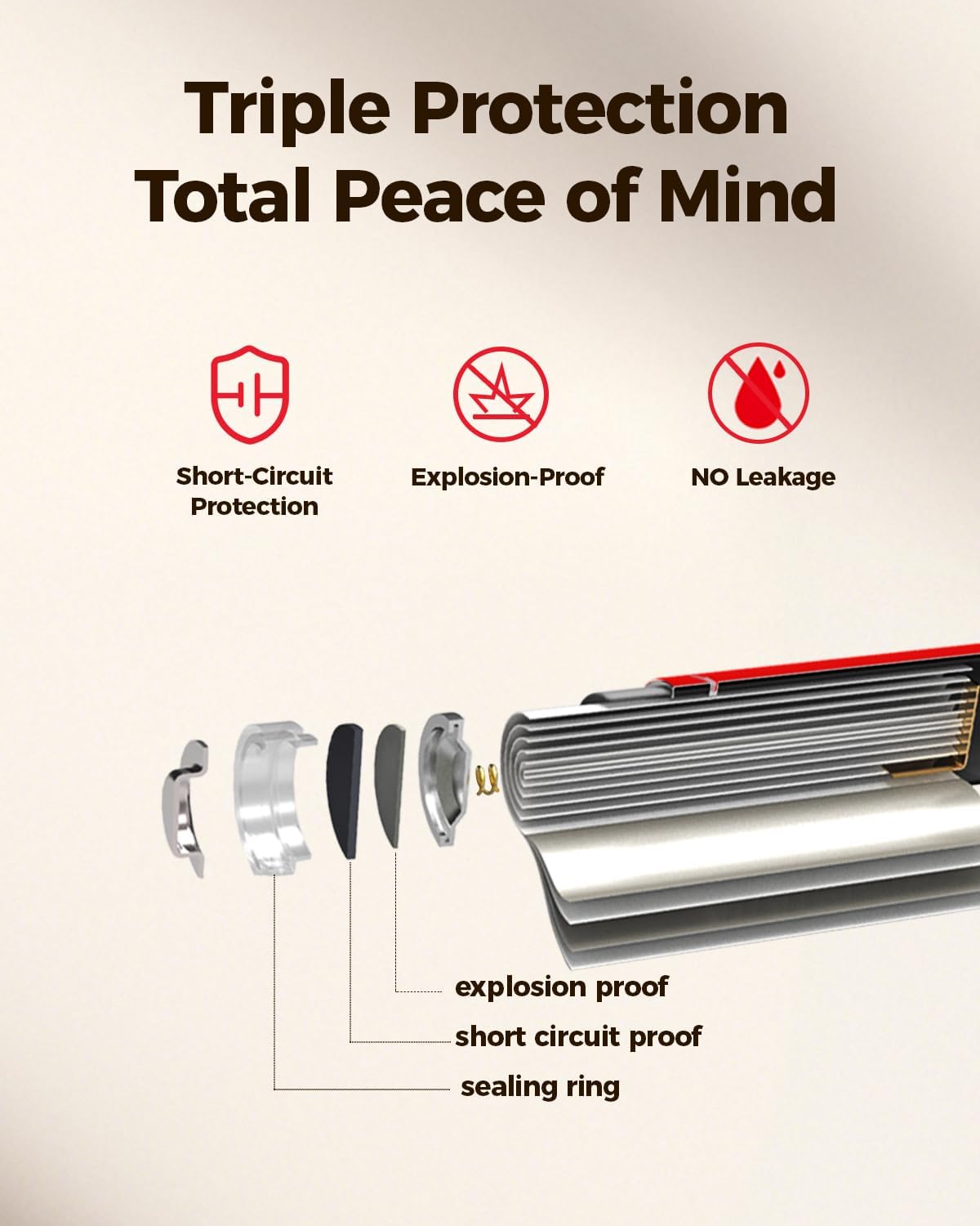 - 【Safety Comes First】Featuring 3-layer protection of leak-proof, explosion-proof valve, short-circuit protection, making them the best choice for high-end electronics