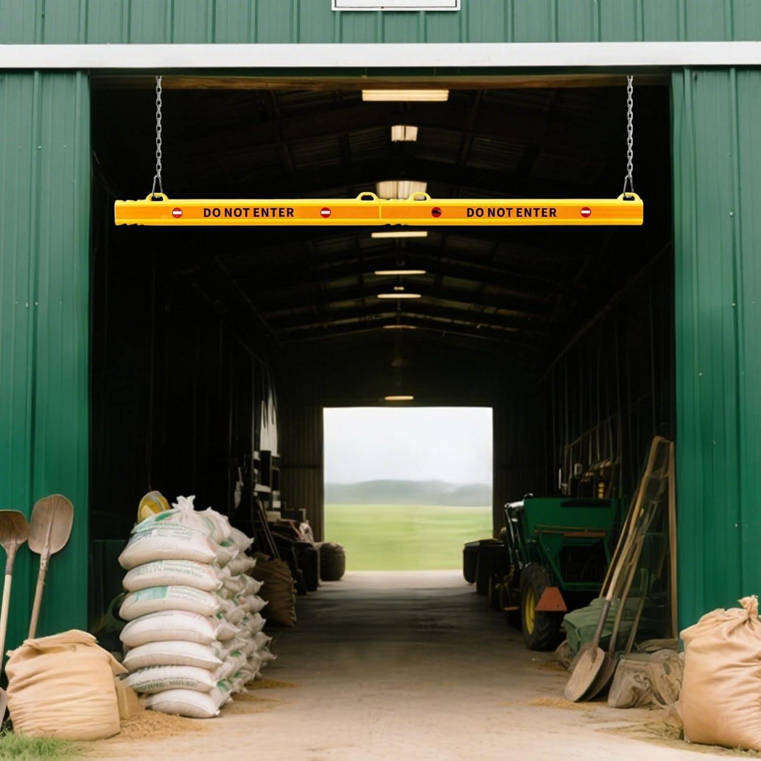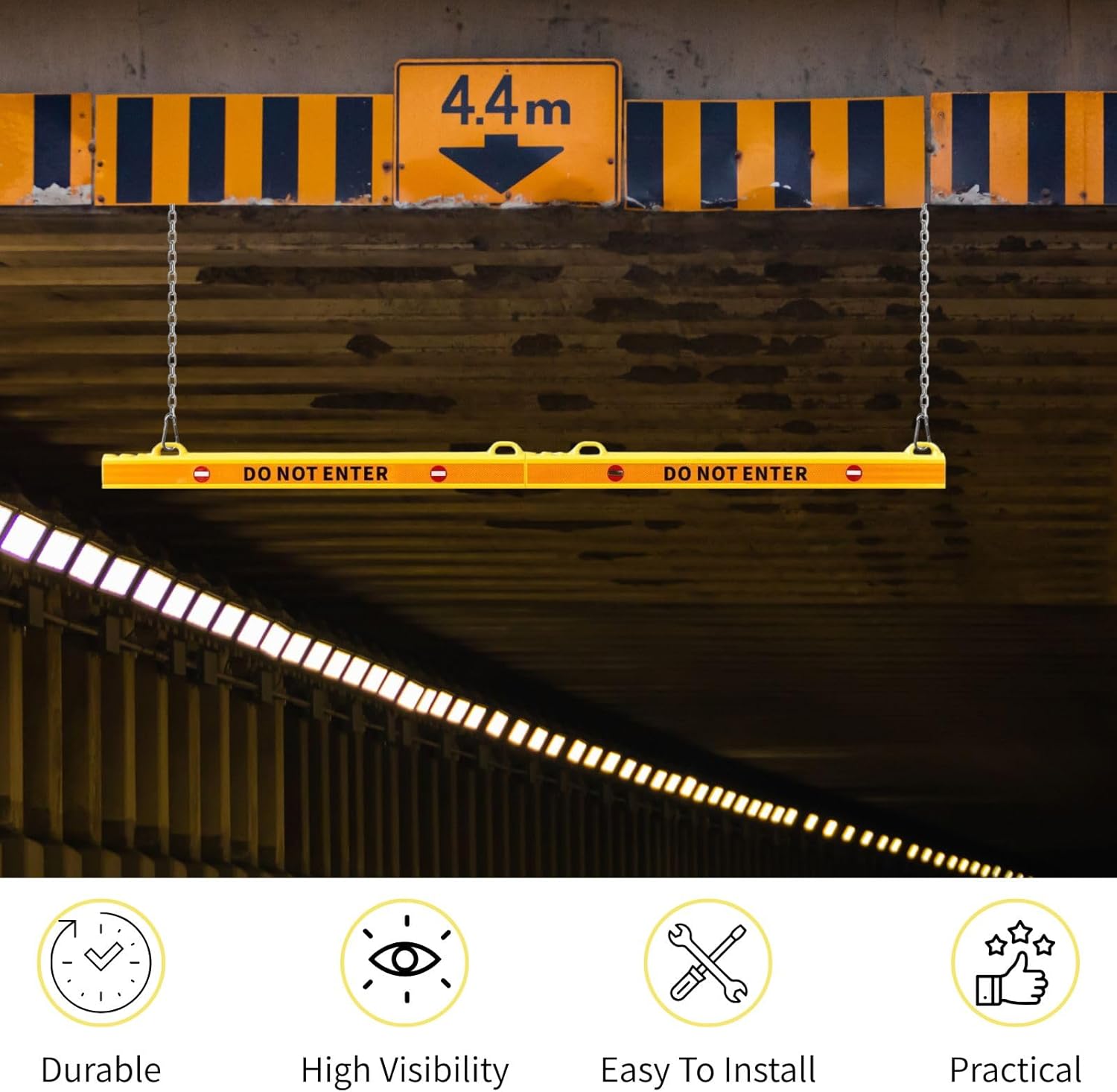 78” Height Guard Clearance Bar (Warning Sign) - MAX Clearance Adjustable to 7' 3" - Hanging Safety Bar with Reflective Yellow Stripes for Parking Lots, Warehouses, Garage Entrances