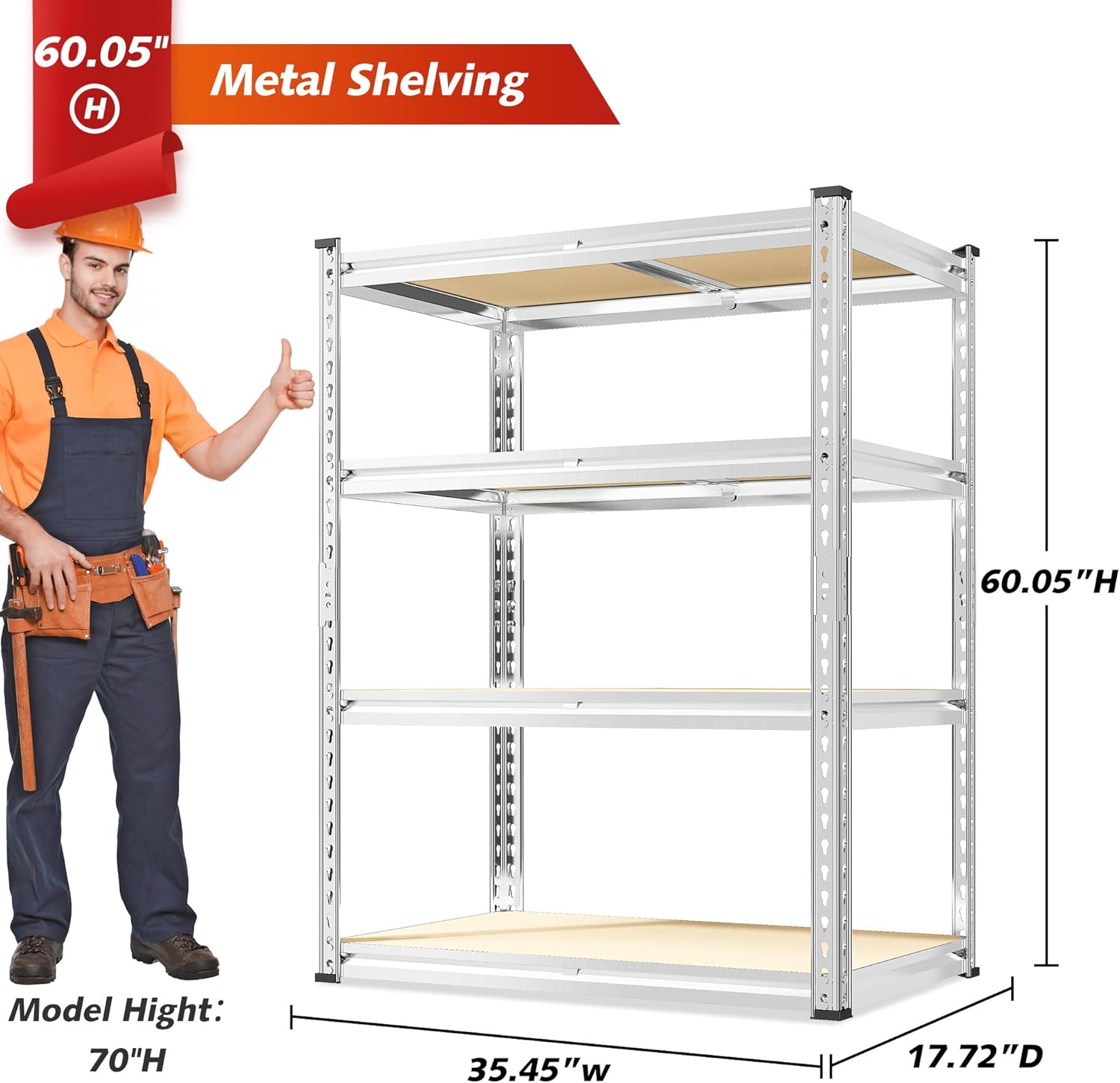 REIBII 60.05" H Storage Shelves 1840LBS Garage Shelving Heavy Duty Shelving 4 Tier Garage Shelves Adjustable Metal Shelf for Kitchen Basement Pantry Warehouse 35.45" W x 17.72" D x 60.05" H