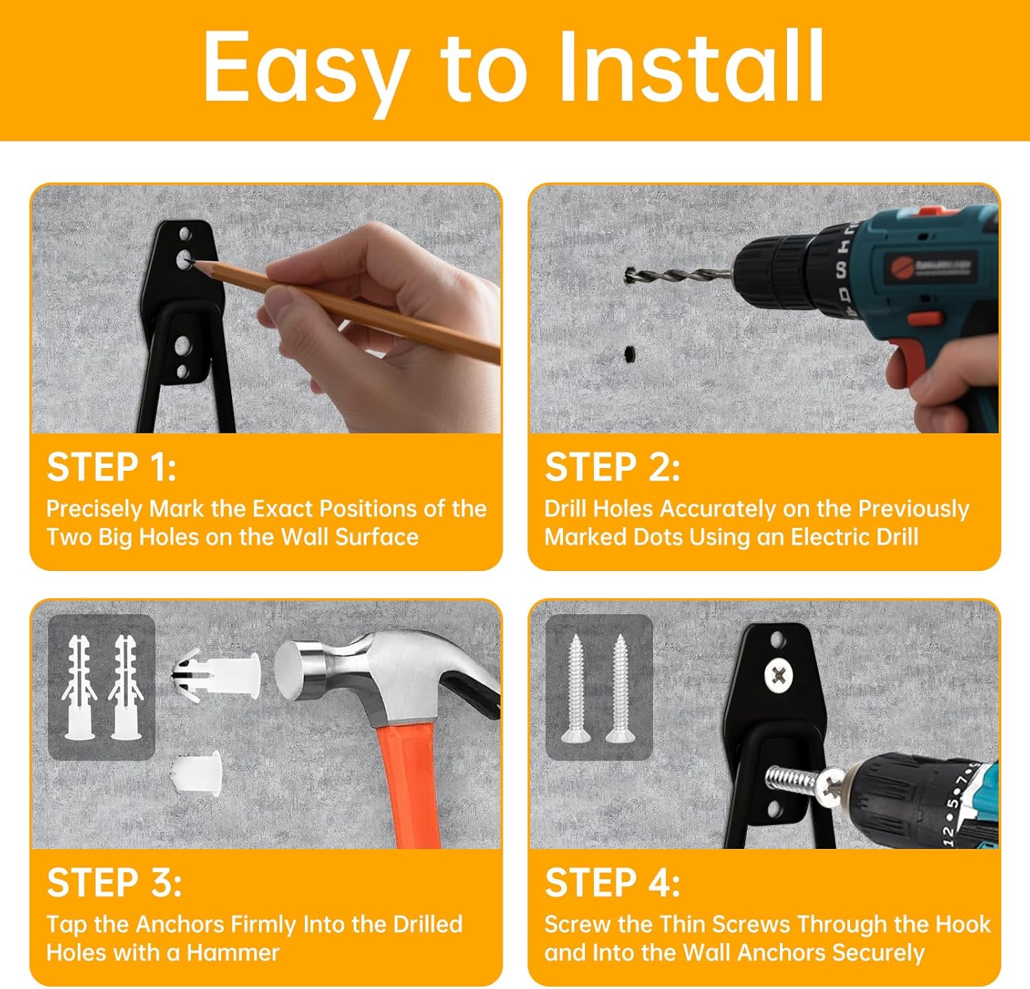 - 【Anti-Slip Design】The Anti-Slip U-Shaped Design securely cradles irregular items like power tools, garden hoses, and extension cords, preventing slippage while optimizing wall space efficiency.