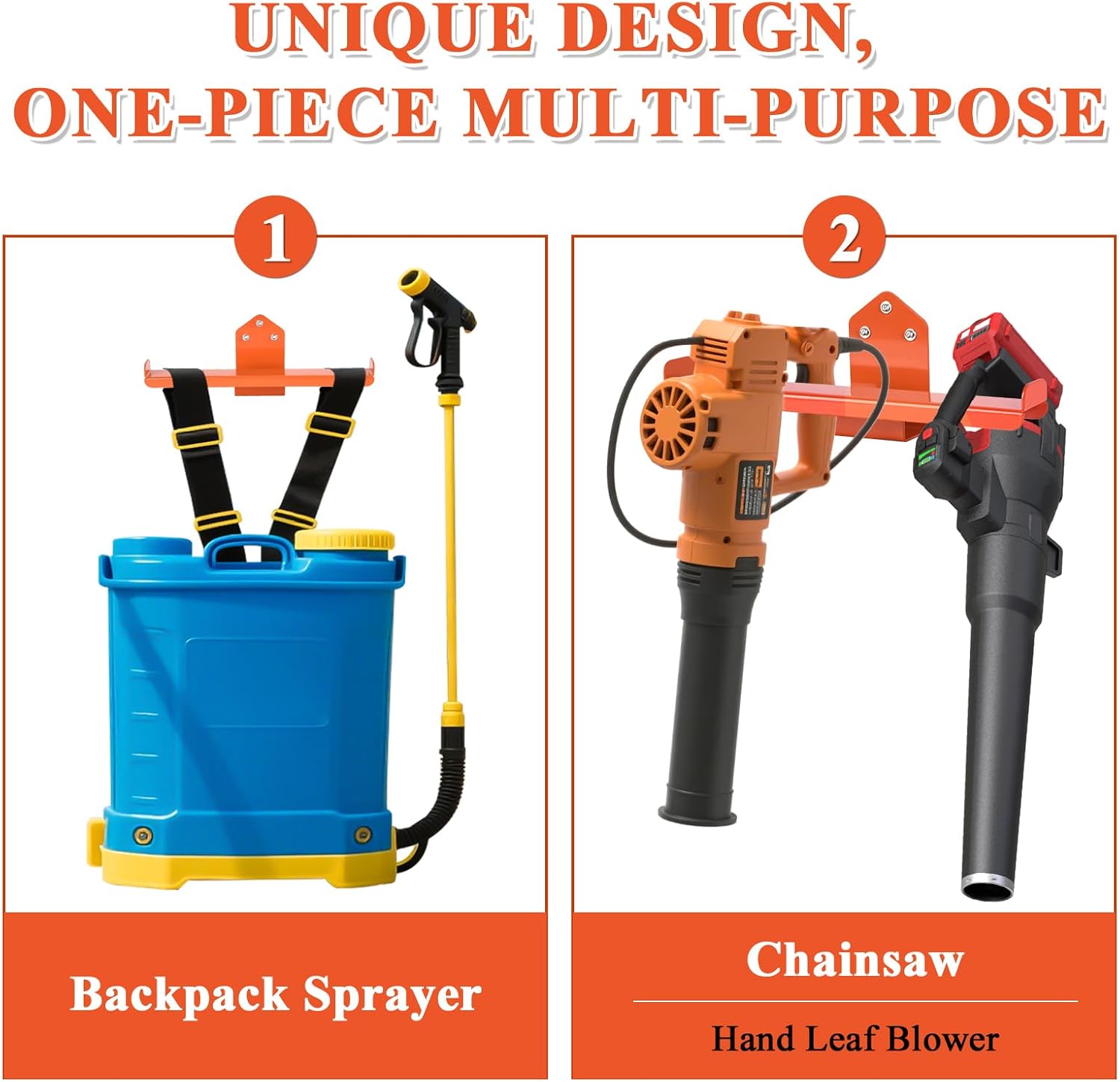 - Unique design, one-piece multi-purpose: Backpack sprayer holder adopts a unique design, which can cleverly organize multiple tools such as power saws, handheld blowers, backpack blowers and backpack sprayers. Backpack sprayer holder ket can flexibly hang backpack tools according to your preferences, meet the storage needs in different scenarios, and make the storage of tools more orderly.