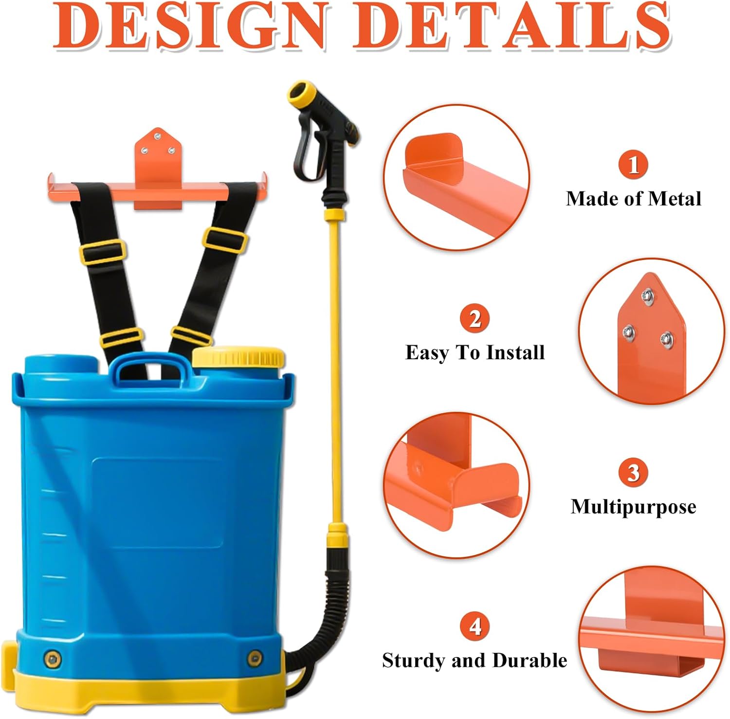 - Intimate protection, beautiful and practical: The surface of the backpack sprayer hanger is coated with orange powder, which is not only rust-proof and durable, but also effectively protects the strap or handle of the tool to avoid scratches and damage. At the same time, the smooth edge design prevents scratches on your hands and tools during use, which is both beautiful and practical, providing all-round care for your tools.