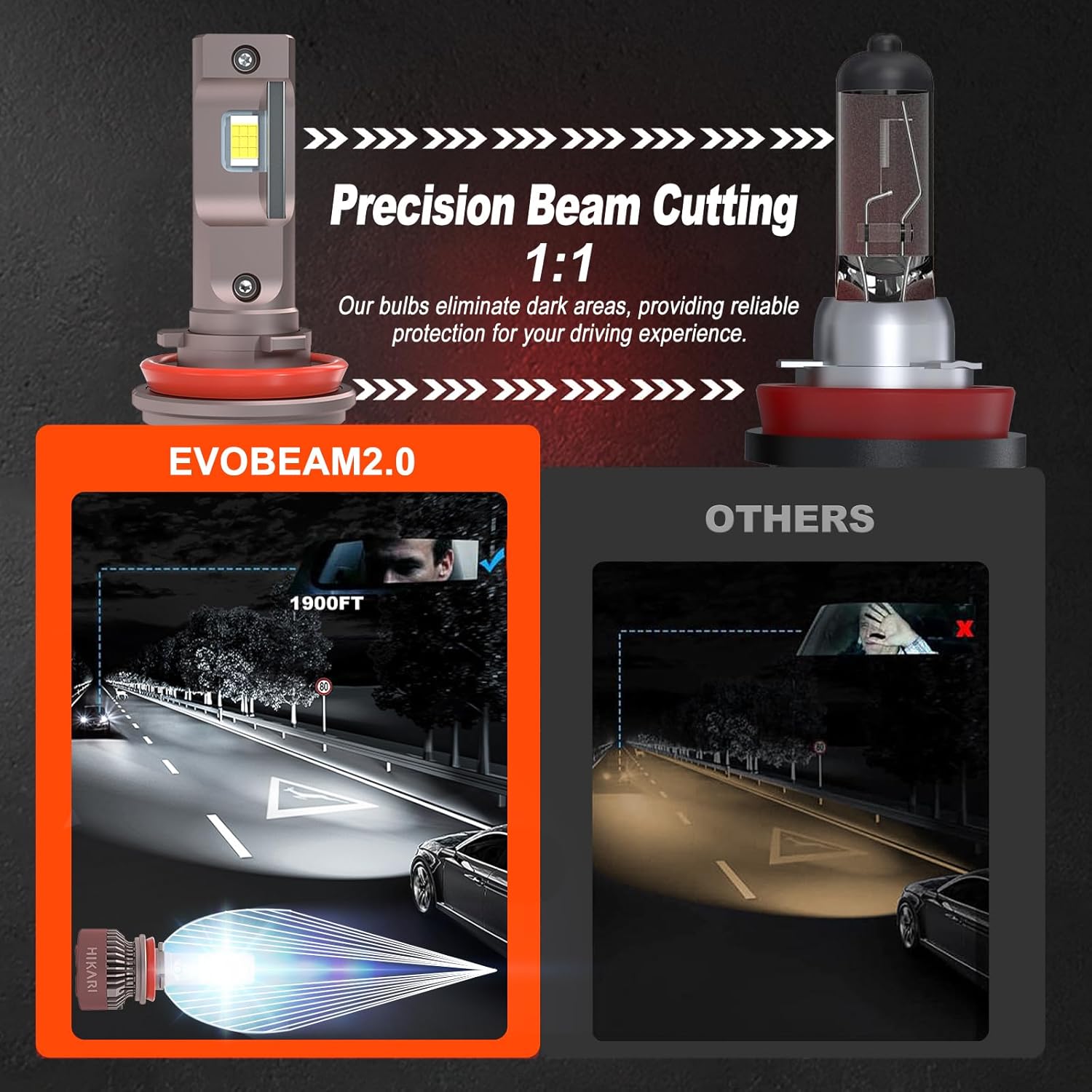 - 【Pure White & Extended Reach】: HIKARI Darkenex H7 bulbs, featuring the advanced Evobeam2.0 chip, deliver 40,000 lumens of crisp 6000K light, illuminating up to 1900 feet ahead, making them suitable for use in rainy and foggy weather.