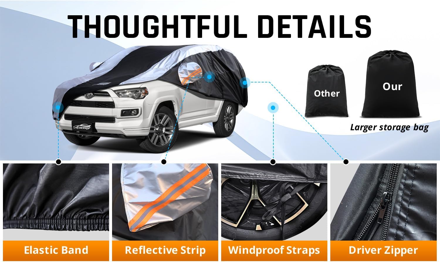 Toyota 4Runner Car Cover Waterproof All Weather with Silver Strip Design, Custom Fit for Toyota 4Runner 2003–2025, 4Runner Accessory with Door Zipper & Windproof Straps