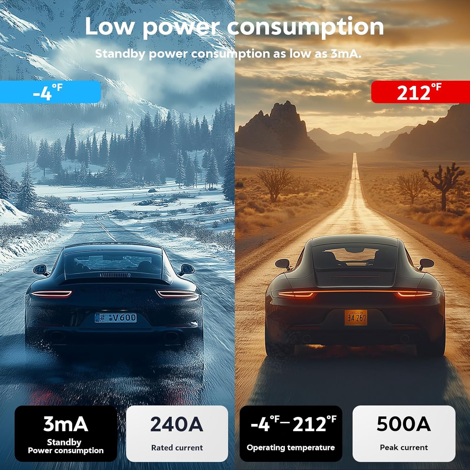 - 【Smart Working Principle】Automatically cuts power after 120 seconds when voltage drops below 11.8V to save energy. Remote control disables when voltage exceeds 13.3V to prevent accidental shutdowns while driving—only manual button control available