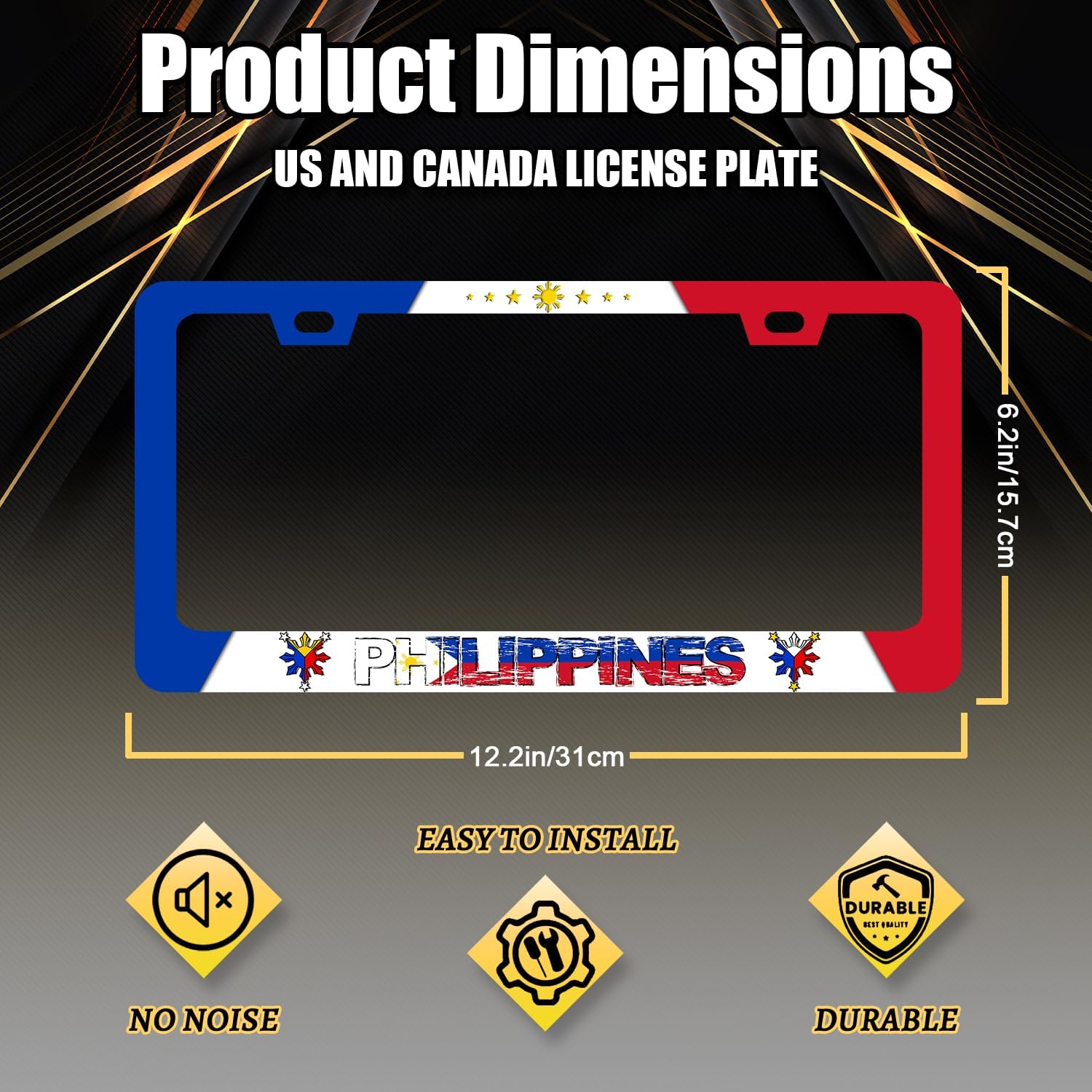 Philippine Flag License Plate Frame Philippines License Plate Stainless Steel Flag Funny Accessories Cars Decor 12.2 X 6.2 Inch with 2 Holes and Screws Fits Standard Us Ca Vehicles