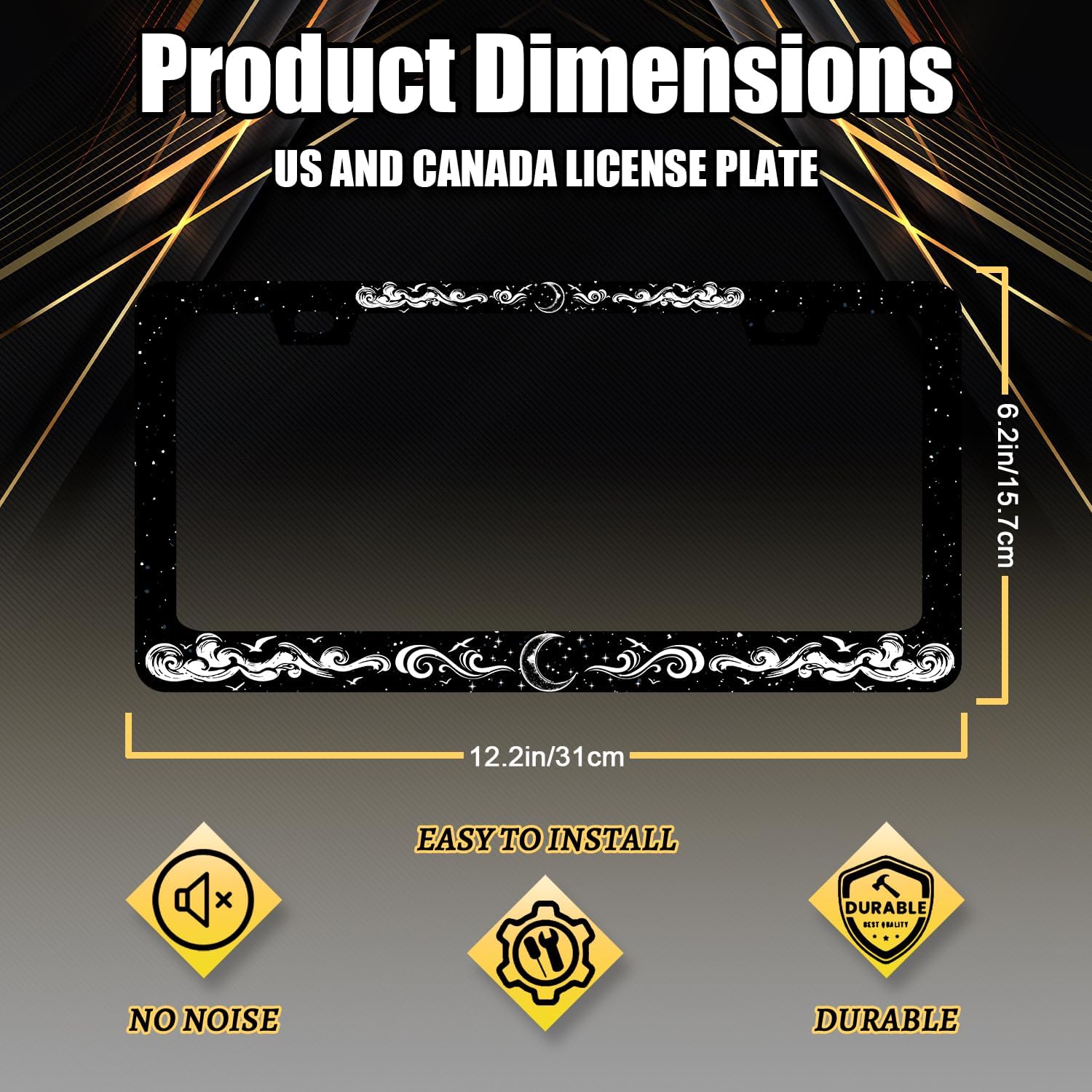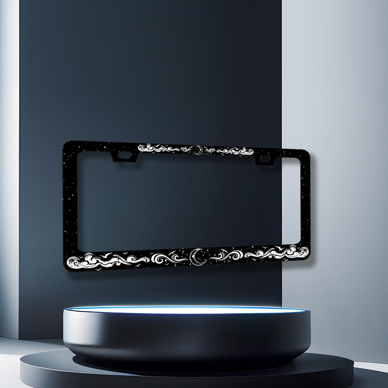 Moon License Plate Frame Clouds Stars Starry Sky License Plate Stainless Steel Funny Black Accessories Cars Decor 12.2 X 6.2 Inch with 2 Holes and Screws Fits Standard Us Ca Vehicles