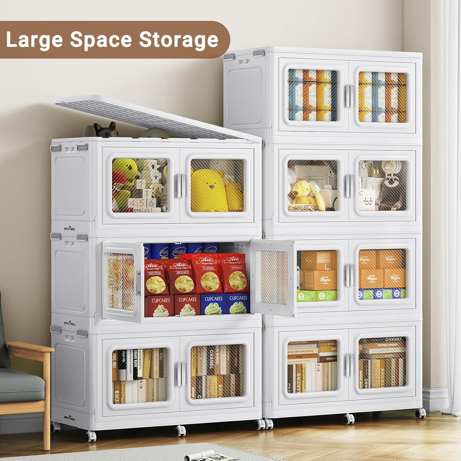 - 【Dual Opening Doors & Easy Access】Broview extra large storage bins feature front double magnetic doors with easy-pull handles for daily quick access and a top lid for direct retrieval of large items like blankets. The huge storage box capacity equivalent to multiple small drawers, they enable organized, multi-level storage—perfect for closets, bedrooms, or nurseries.