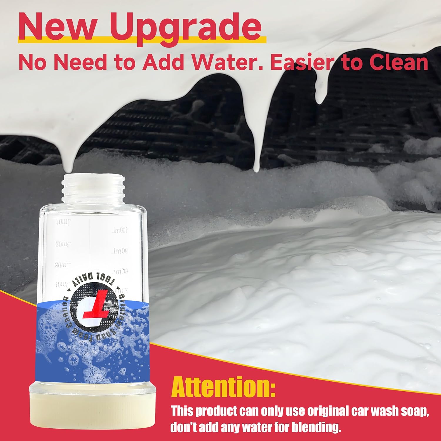 - INNOVATIVE DESIGN: The pressure washer foam cannon is designed for ultimate convenience. Simply add your favorite car wash soap directly into the bottle - no need to dilute it with water. This novel design simplifies the cleaning process, saving you time and effort. Plus, you don’t need to worry about achieving the right soap concentration; the undiluted soap produces thicker, richer foam, ensuring a more effective car washing