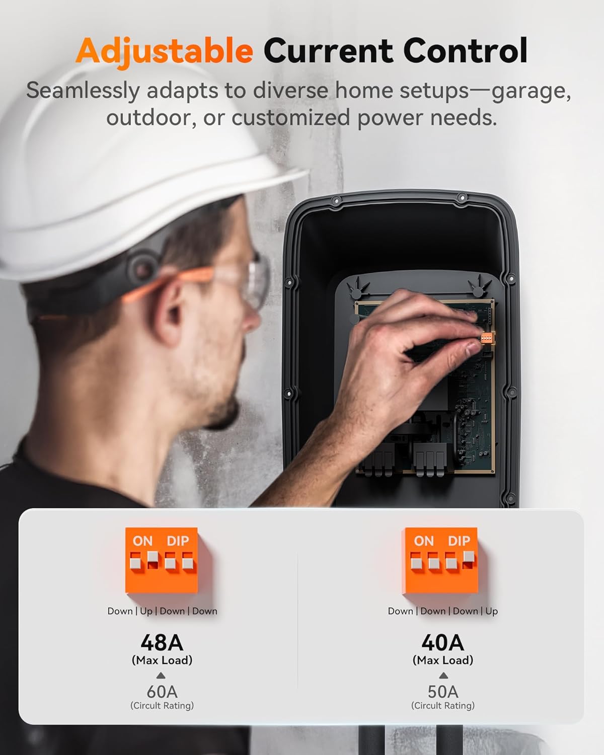 - Smart App Control: Schedule up to 4 groups of charging sessions (3 time slots per group), adjust amperage, and set custom times with rate-based cost calculations—optimize charging around off-peak hours to slash your energy bills.