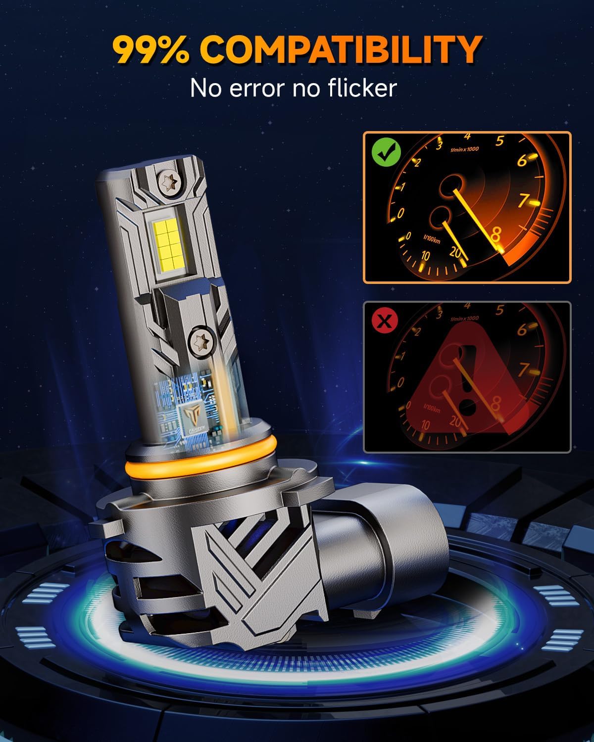 - γ10+ Years Longer LifespanγUtilizing premium aviation aluminum as the main body and featuring a large copper baseboard for extensive heat dissipation. Coupled with a 15,000RPM high-speed cooling fan, it enhances heat dissipation efficiency. New upgraded FAHREN 9012/HIR2 bulb ensures a lifespan exceeding 60,000 hours of continuous illumination and stable operation. Bid farewell to the inconvenience of frequent replacements
