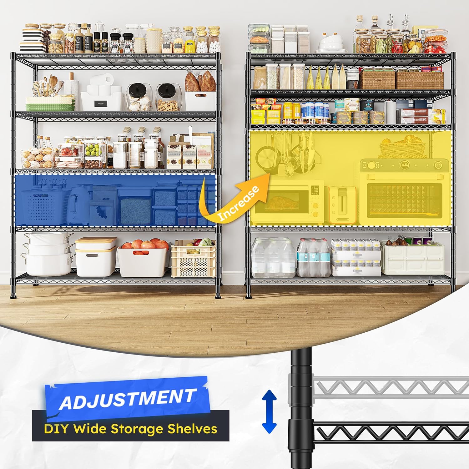 45 "W Storage Shelves 5 Tier Wire Shelving Unit Adjustable Metal Shelving Wire Shelf Pantry Shelves Wire Commercial Rack for Closet Kitchen Pantry Utility Room Garage 45" Wx 13.5" Dx70.5 H Black