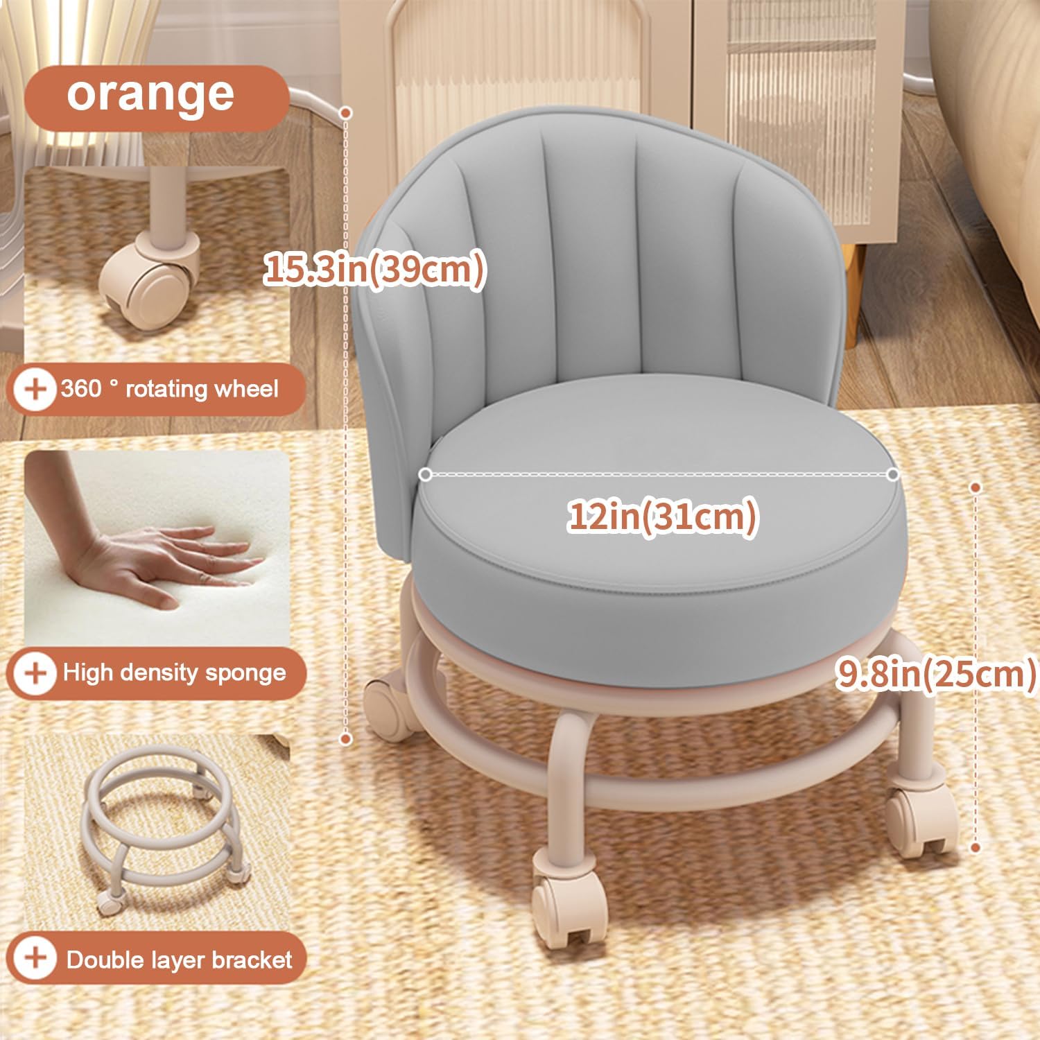 - 【Thickened PU Leather Fabric】Low rolling stool with backrest is made of PU leather material, which is waterproof durable and easy to clean.The thickened sponge filling inside the leather provides a comfortable experience for users when sitting down.
