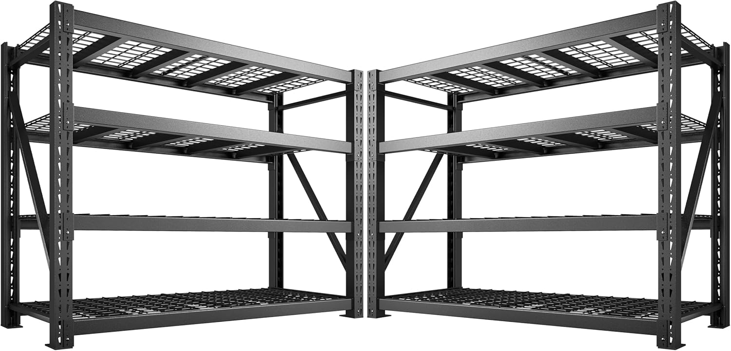 - Maximize Your Storage Space:Maximize your storage potential with this 60"W x 24"D x 72"H garage shelving. The 4-tier storage shelving design creates organized zones while 24" depth holds bulky items flush. Extra-wide beam spacing offers flexible storage with full accessibility. Open-frame design ensures 360° visibility and airflow, while standard dimensions fit perfectly along walls/corners.