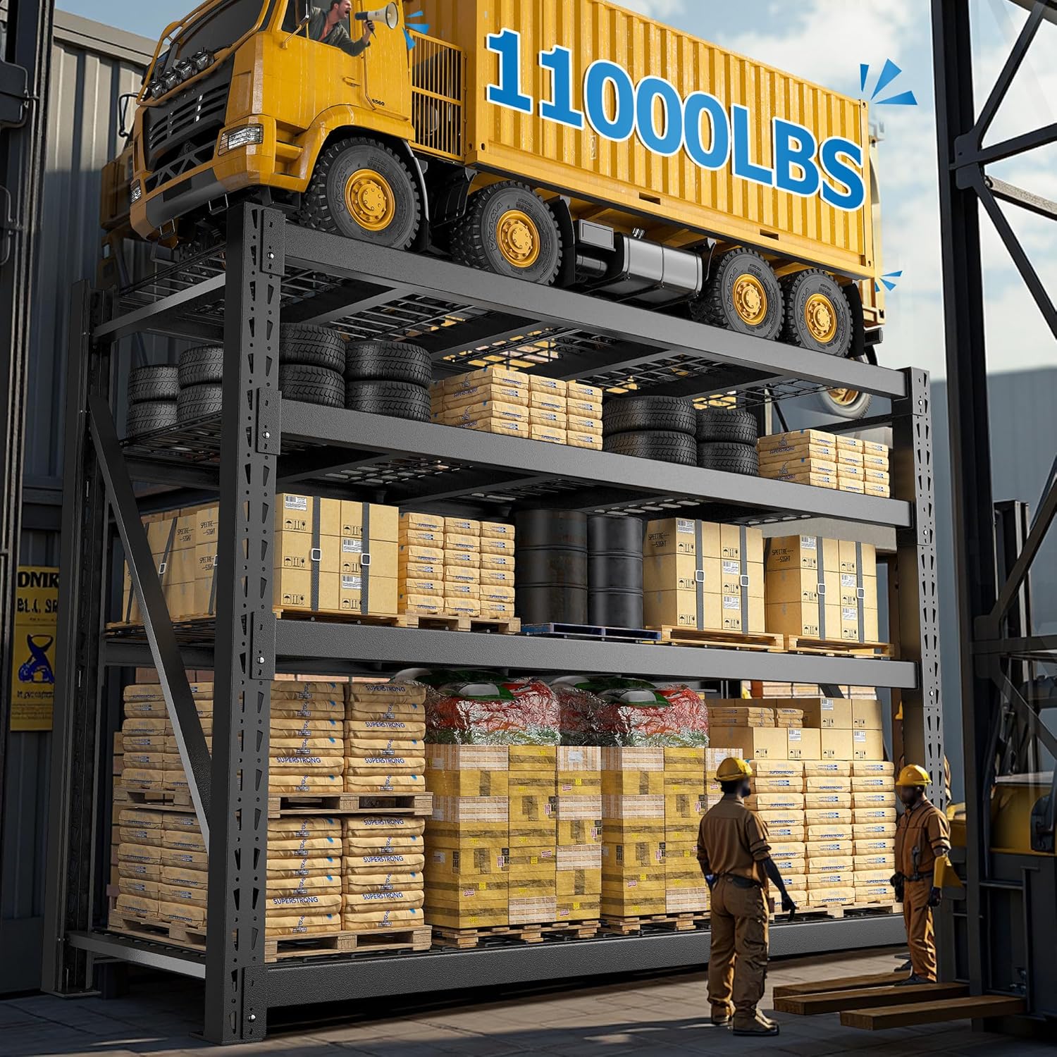 - Industrial-Strength Garage Shelving: 2,750 lbs/shelf (11,000 lbs total) capacity. Reinforced steel beams & seamless columns support machinery/auto parts. Storage shelving joint-free design ensures stability under heavy loads—equivalent to 2+ vehicles. Professional-grade durability.
