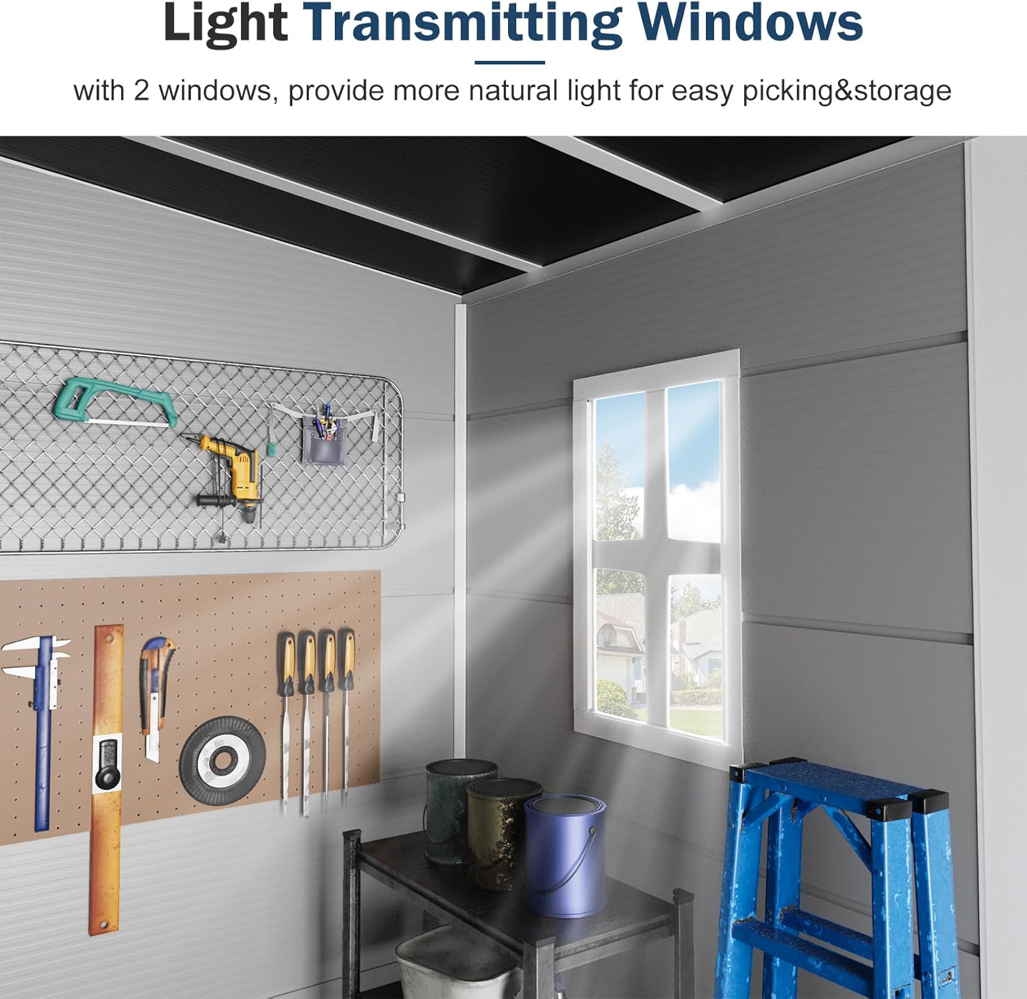 - DURABLE RESIN STORAGE SHED:It looks like a classic wood shed, but it doesn’t need to be repainted or repaired since it will never rot, rust, or peel–unlike wood.The shed is also easy to modify. So, if you want to paint the walls or drill holes, you can make the inside of the shed work to fit your needs exactly
