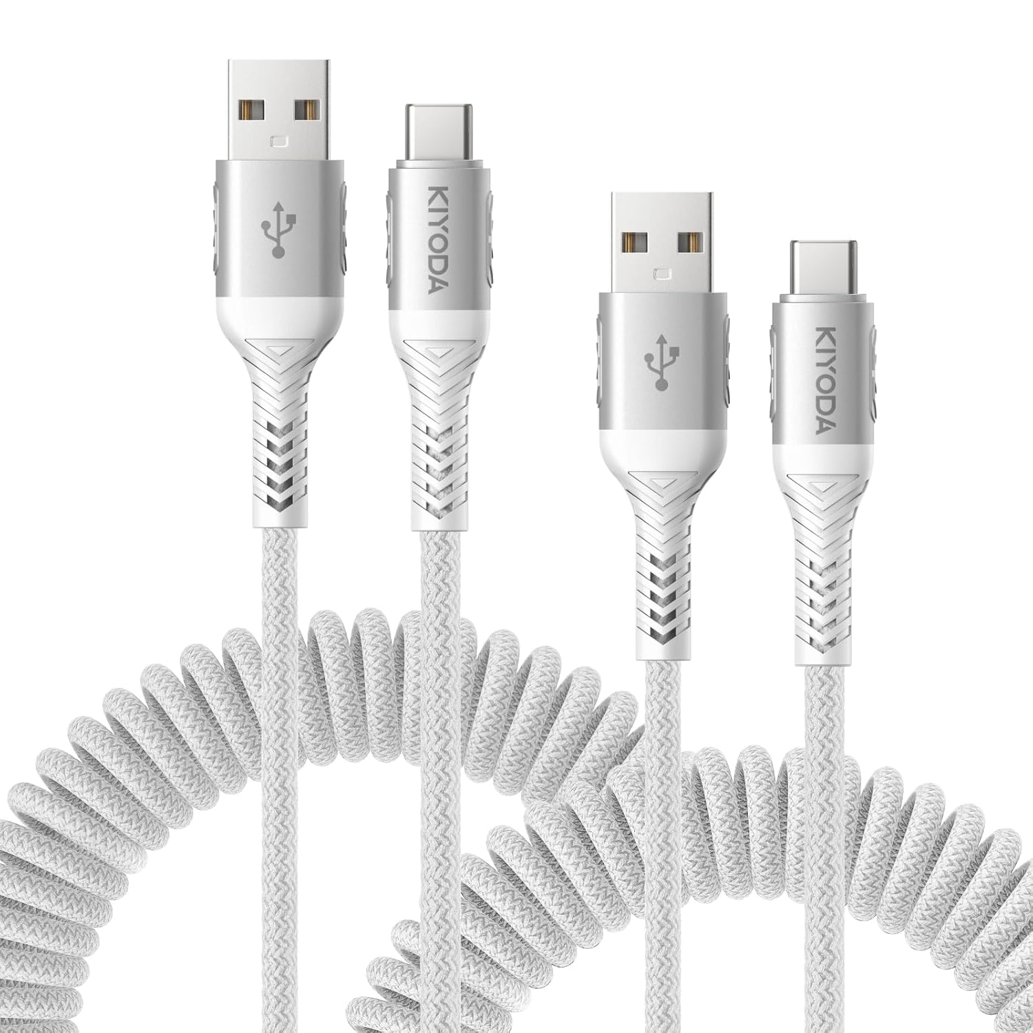 - Coiled USB C Cable: This coiled USB to USB C cable is designed with retractable spring design, no tangle, no knot, not taking up space and easy to carry and use. The automatic rebound design for car charging saves space on the center console and avoids clutter. It is perfectly compatible with Apple's CarPlay and Android Auto, with fast charging and data synchronization.