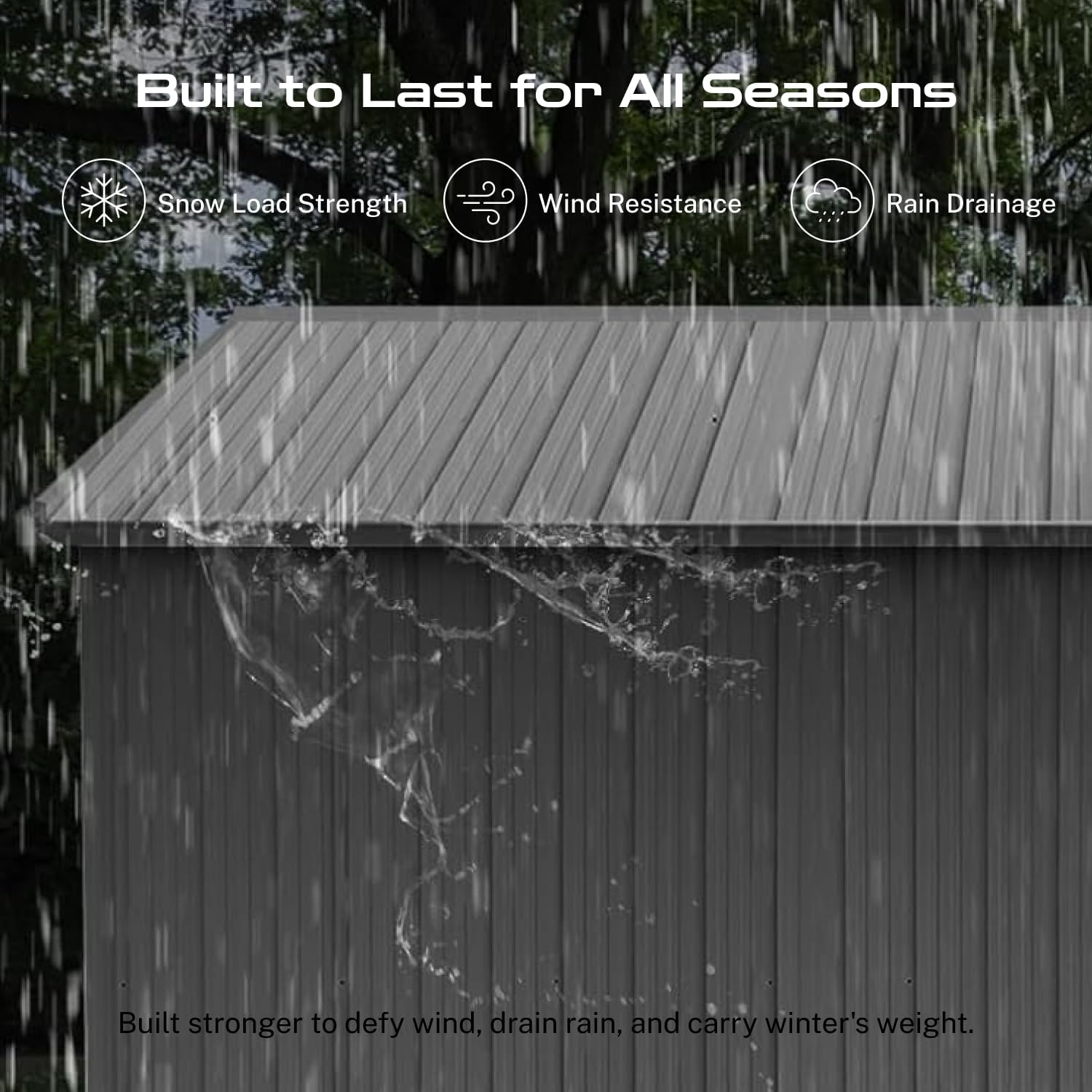 - š [Durable All-Metal Construction] Engineered for lasting performance, this robust metal storage shed is crafted from premium. The heavy-duty steel panels and reinforced frame create a reliable storage house built to withstand harsh weather, seasons, and frequent use, ensuring your casita de patio remains a sturdy sanctuary for years
