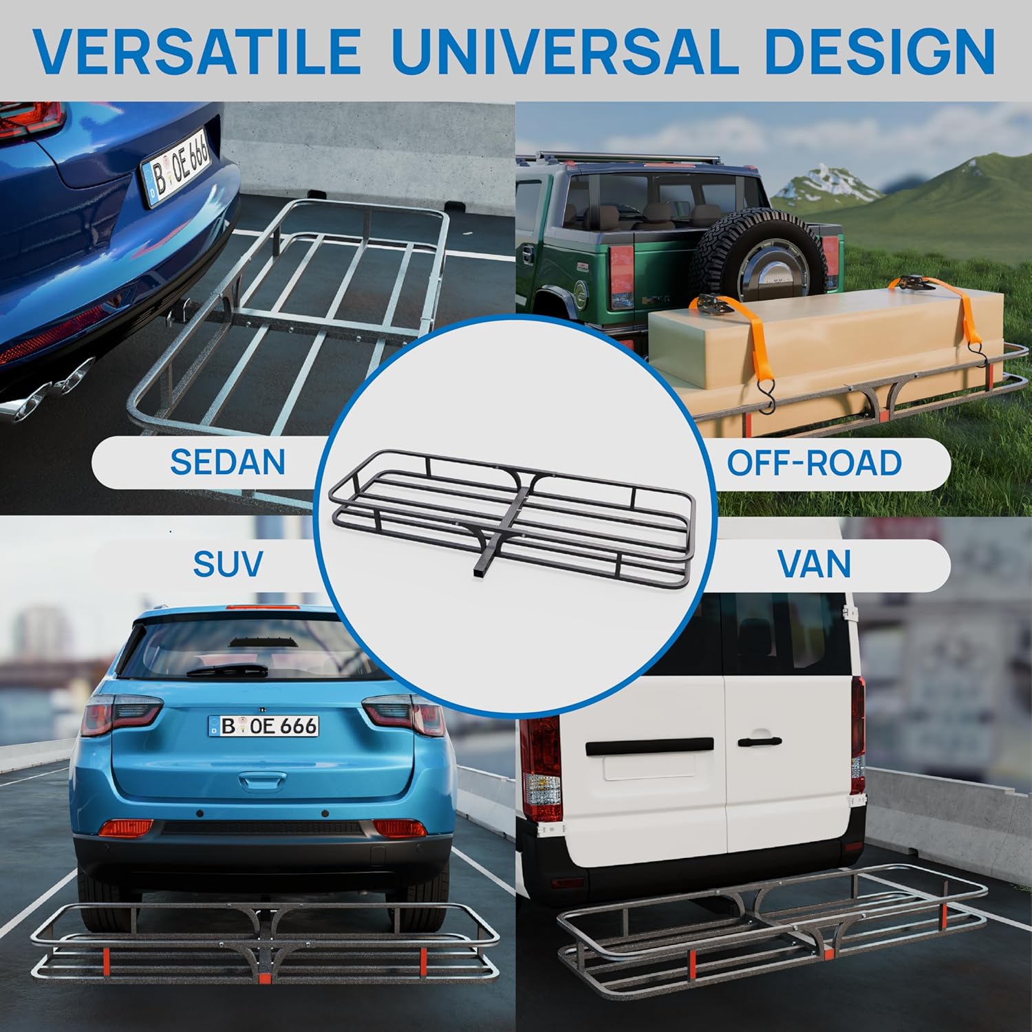 - 【Large Size & Capacity】 54 x 19 x 5.5 inches cargo carrier with anti-scratch and anti-corrosion coating, can support up to 500lbs for long-term use.