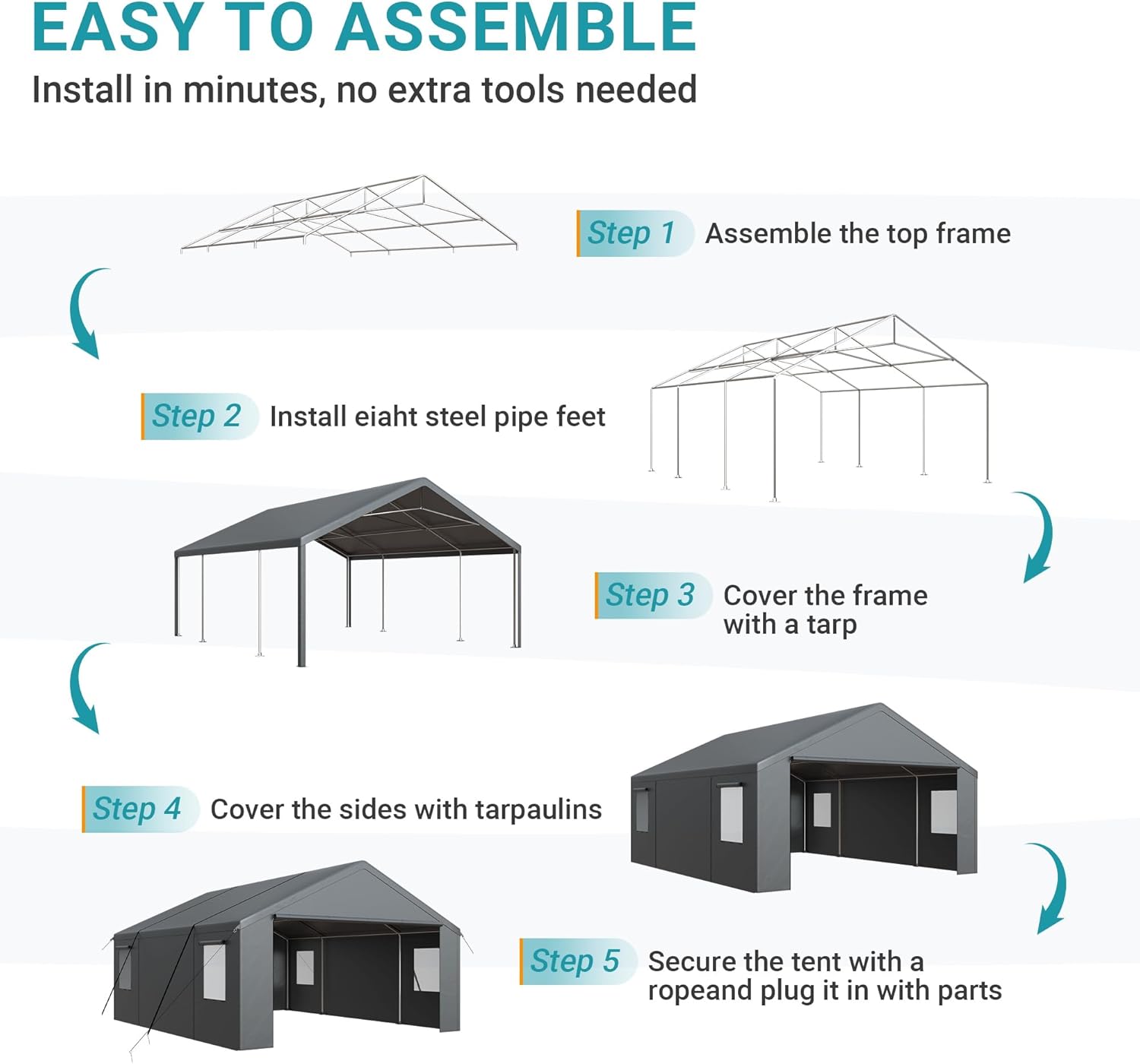 - 【Easy Installation】Each part of our carport has a specific number in the instruction manual, step-by-step operation manual is included, the carport is quick and easy to install. If you have any questions about installation and use, please contact us.
