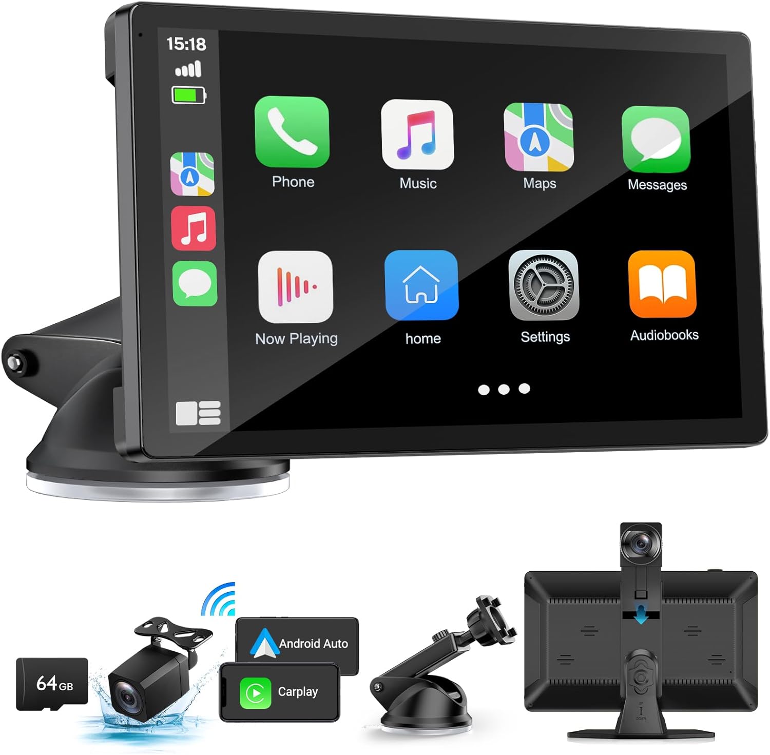 Wireless Carplay Screen for Car with 4K Dash Cam, 9" Portable Carplay & Android Auto, Component Subwoofer, Touchscreen with 1080p Backup Camera, GPS Navigation/Voice Control/BT/Mirror Link/FM