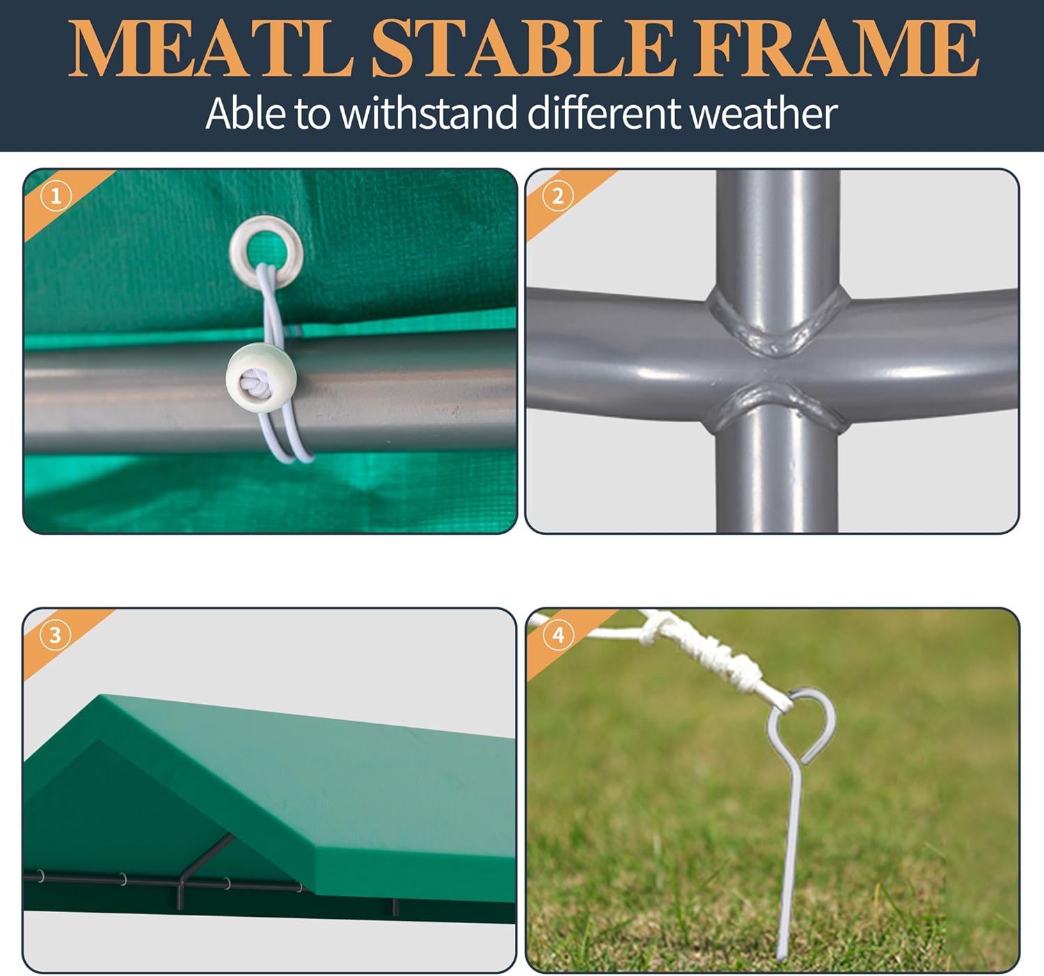 - 【Stable Metal Frame】: Our heavy duty car garage tent uses 8 strong φ38mm galvanized steel pipes, unique double wall construction,durable. The surface is coated with anti-rust powder coating to prevent cracking, peeling, rust and corrosion.