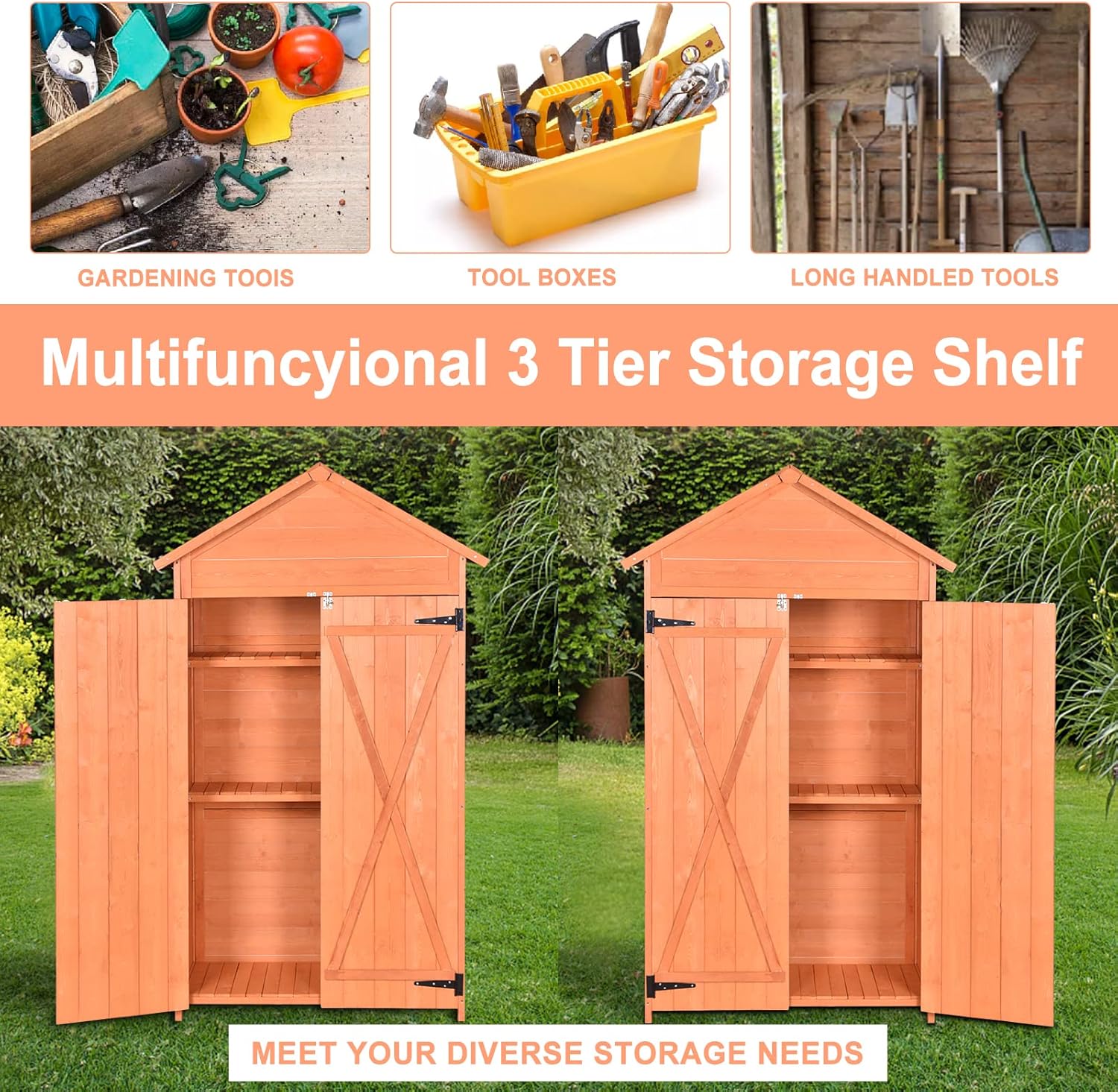 Wooden Tool Shed Large Outdoor Storage Cabinet & Garden Storage Shed with Lockable Doors, Heavy Duty Waterproof Construction for Backyard, Patio, Garage, Lawn Organizer