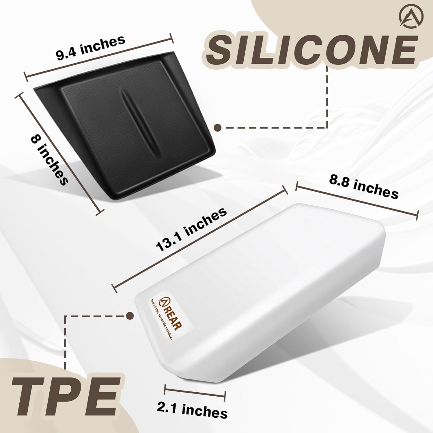 Muslogy Compatible with 2026+ Model Y Juniper Refresh Accessories Armrest Cover Protection TPE (White) & Silicone Mat OEM Style 2PCS Set Non-Slip Waterproof