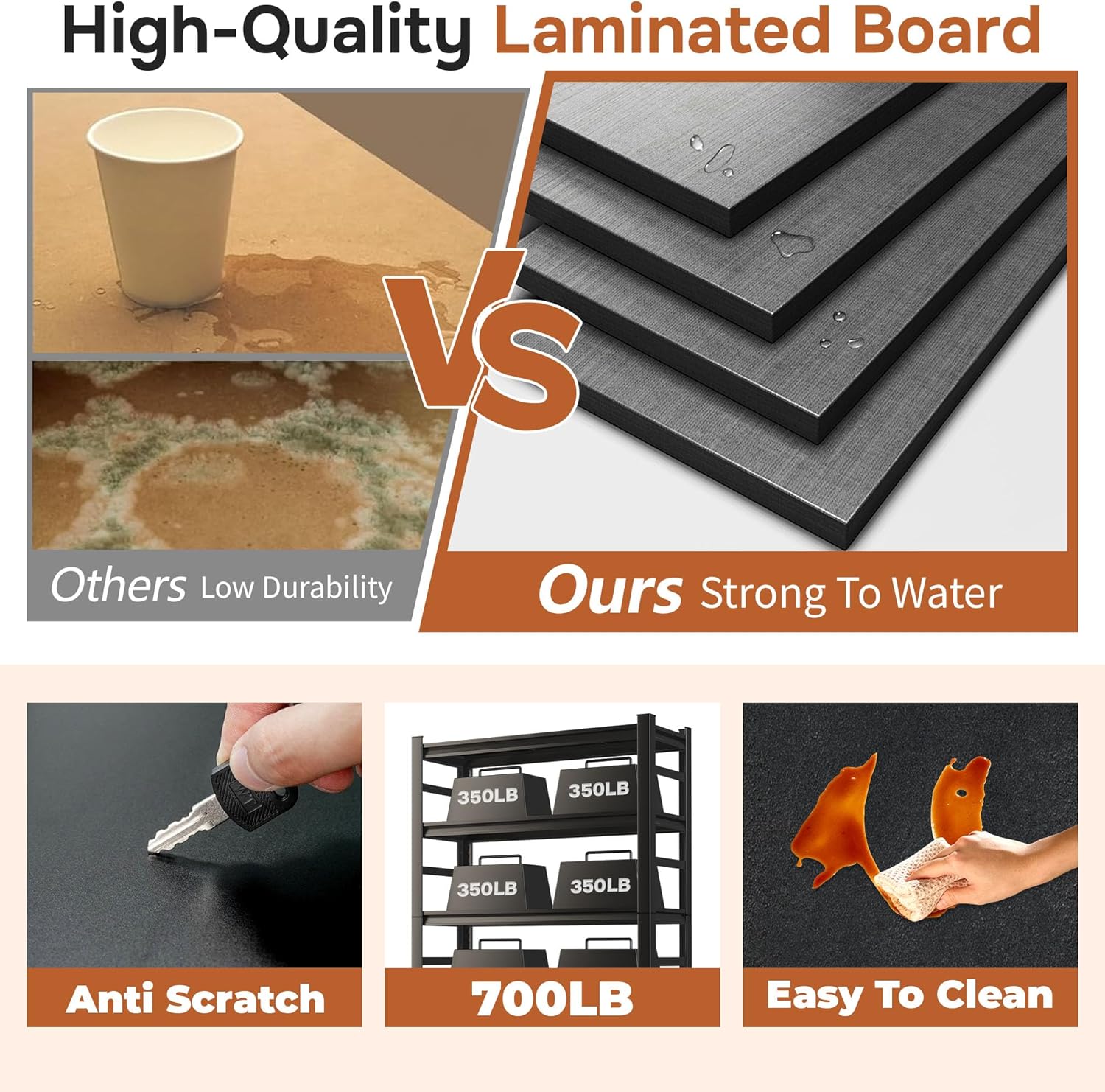 - 💪 COMMERCIAL-GRADE STRENGTH, 3500 LBS BEAST MODE – Don't settle for flimsy shelves. Our garage shelving is forged from high-quality, thickened cold-rolled steel and features an exclusive double-layered column design for unmatched stability. It effortlessly supports a massive 3500 LBS total capacity (700 LBS per shelf). From heavy power tools and packed totes to engine parts, store your heaviest items with absolute peace of mind. Conquer your clutter with confidence!