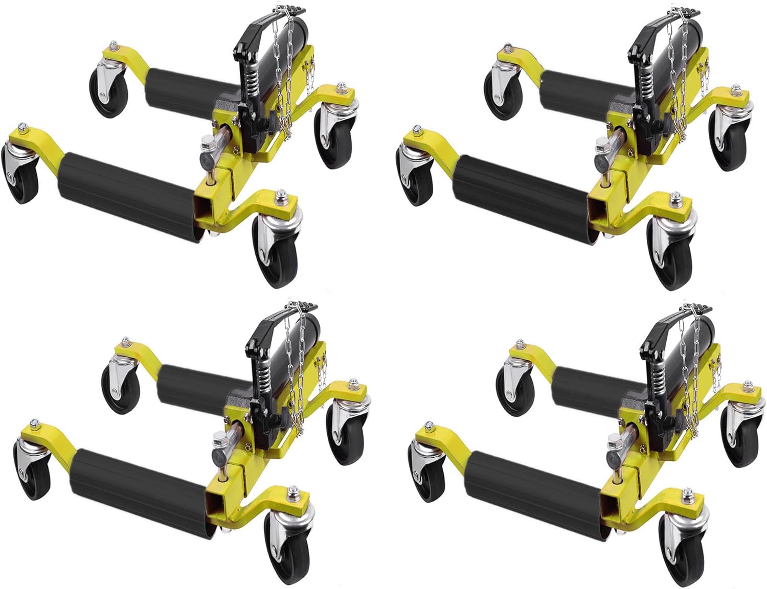 4 Pcs Car Wheel Dolly with Hydraulic Tire Jack, 1500LBS Capacity Trailer Dolly for Vehicle Positioning for Truck RV Trailer, Yellow